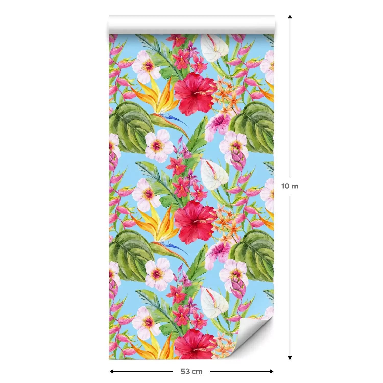 Een standaardrol behang heeft een afmeting van 0,53 m x 10 m, wat voldoende is om ongeveer 5 m² muur te bedekken.
