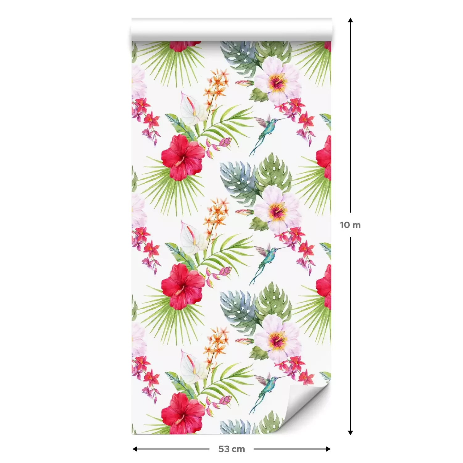 Een standaardrol behang heeft een afmeting van 0,53 m x 10 m, wat voldoende is om ongeveer 5 m² muur te bedekken.