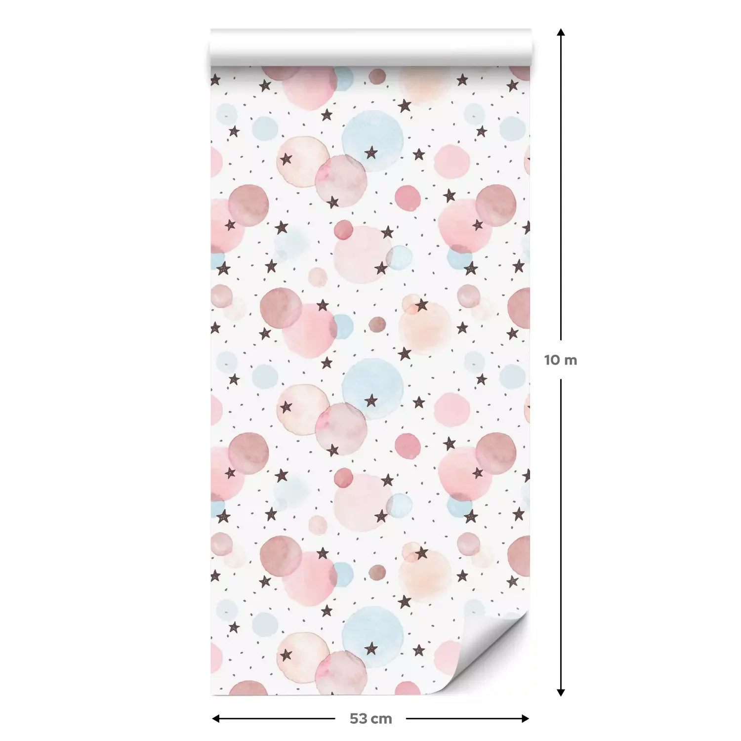 Een standaardrol behang heeft een afmeting van 0,53 m x 10 m, wat voldoende is om ongeveer 5 m² muur te bedekken.