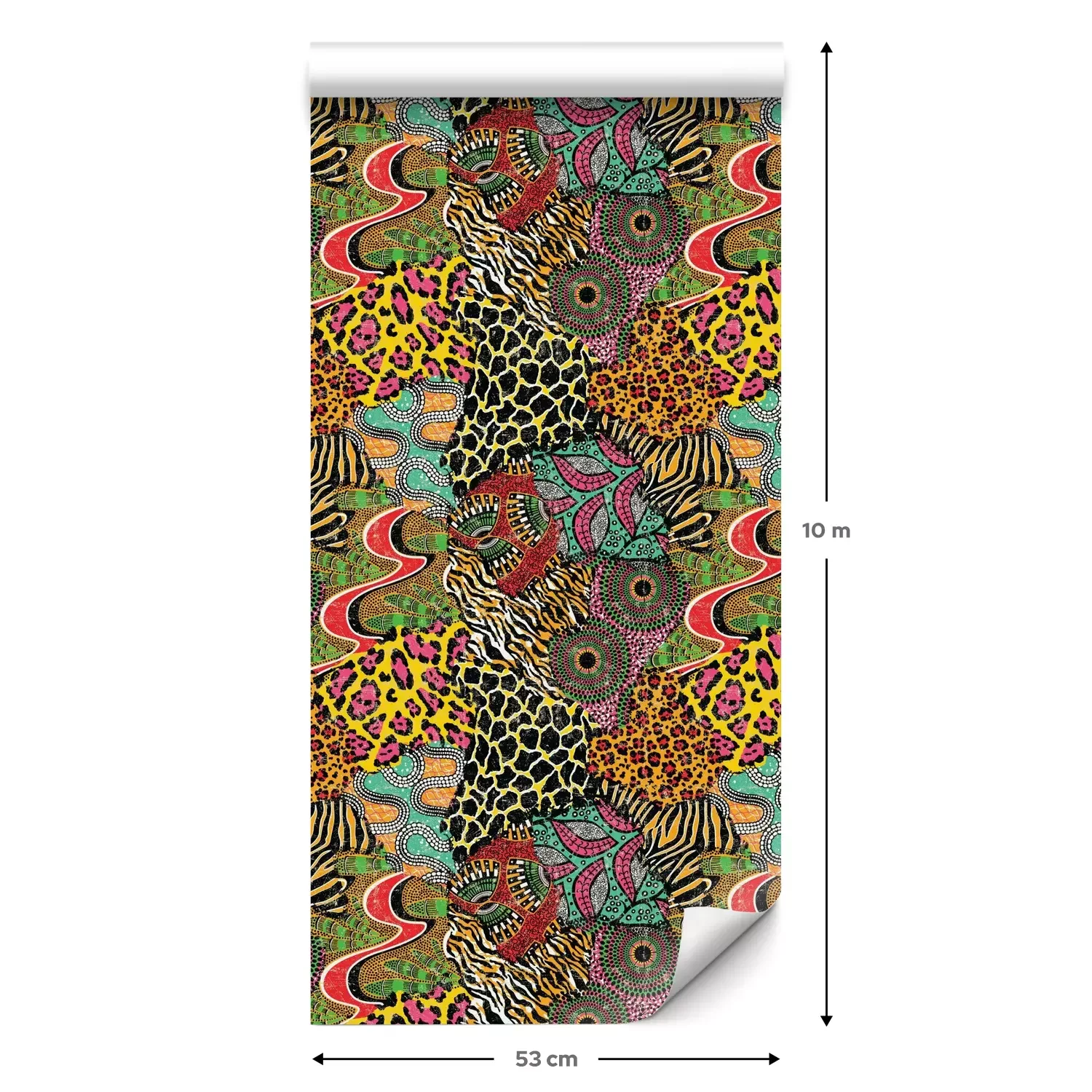 Een standaardrol behang heeft een afmeting van 0,53 m x 10 m, wat voldoende is om ongeveer 5 m² muur te bedekken.