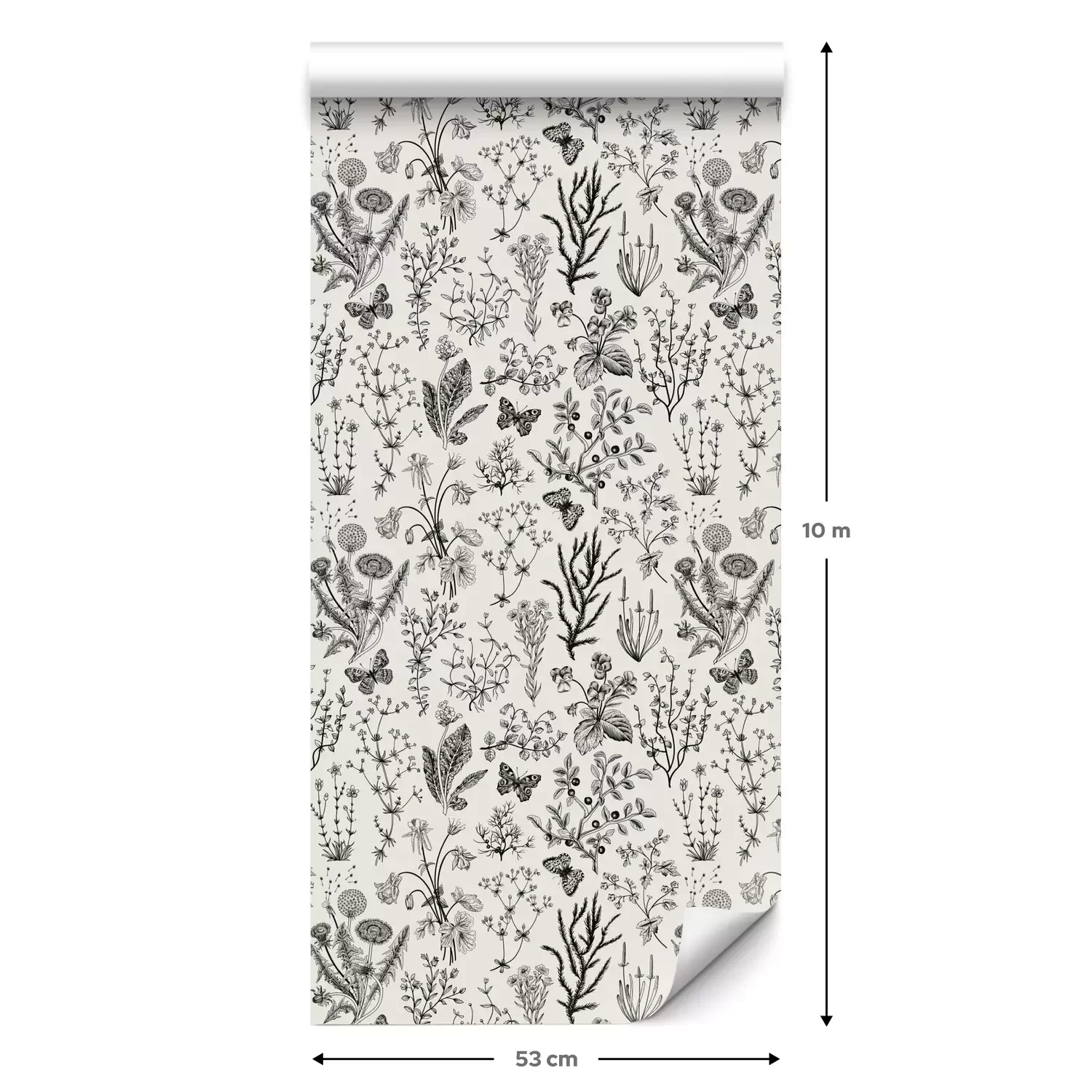 Een standaardrol behang heeft een afmeting van 0,53 m x 10 m, wat voldoende is om ongeveer 5 m² muur te bedekken.