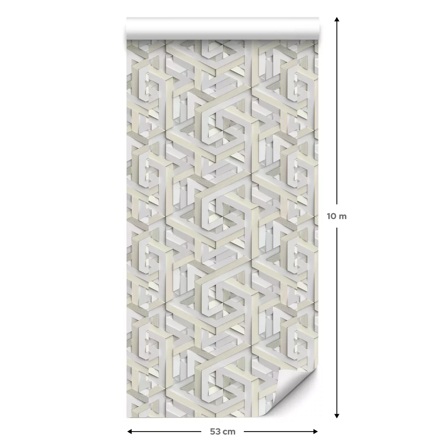 Een standaardrol behang heeft een afmeting van 0,53 m x 10 m, wat voldoende is om ongeveer 5 m² muur te bedekken.