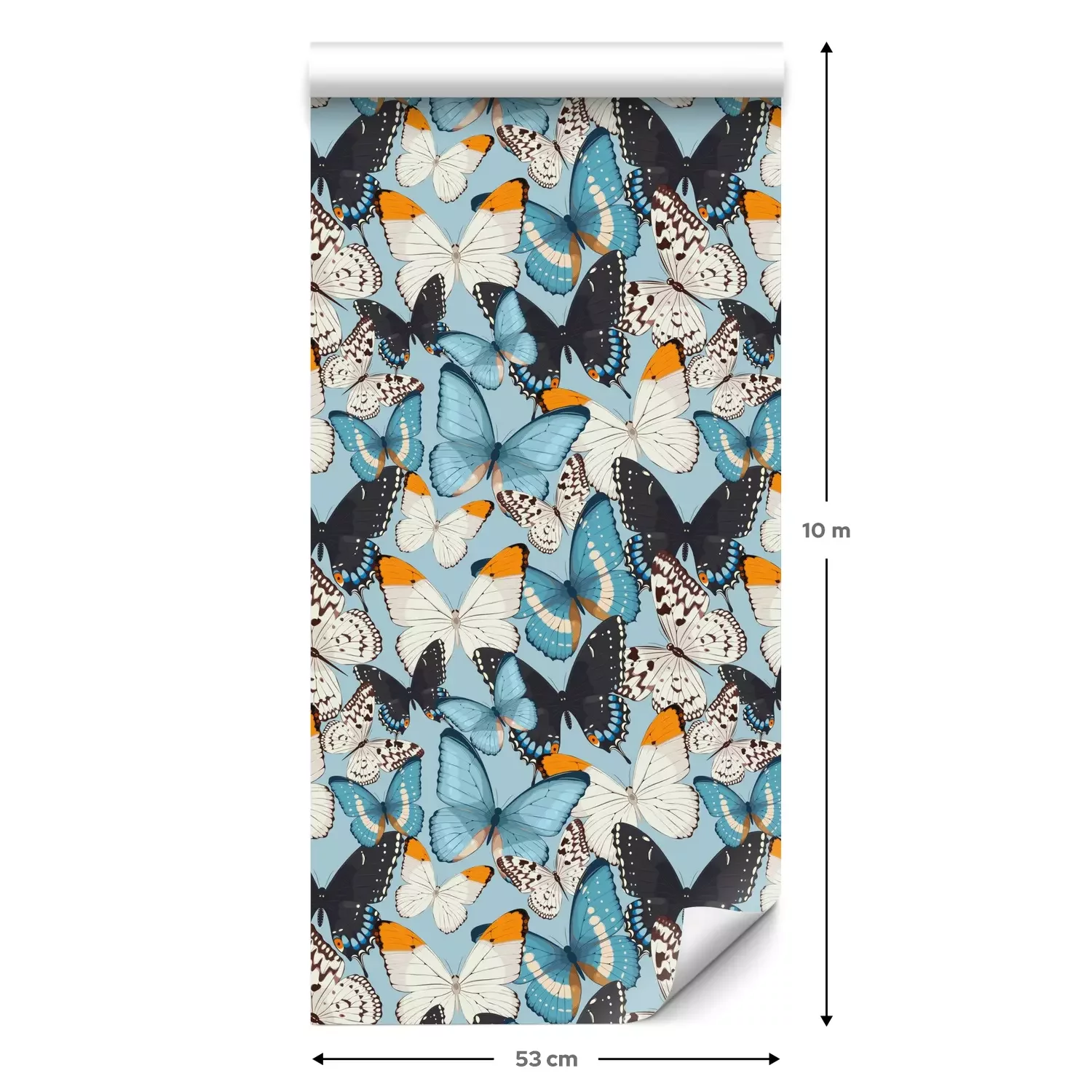 Een standaardrol behang heeft een afmeting van 0,53 m x 10 m, wat voldoende is om ongeveer 5 m² muur te bedekken.