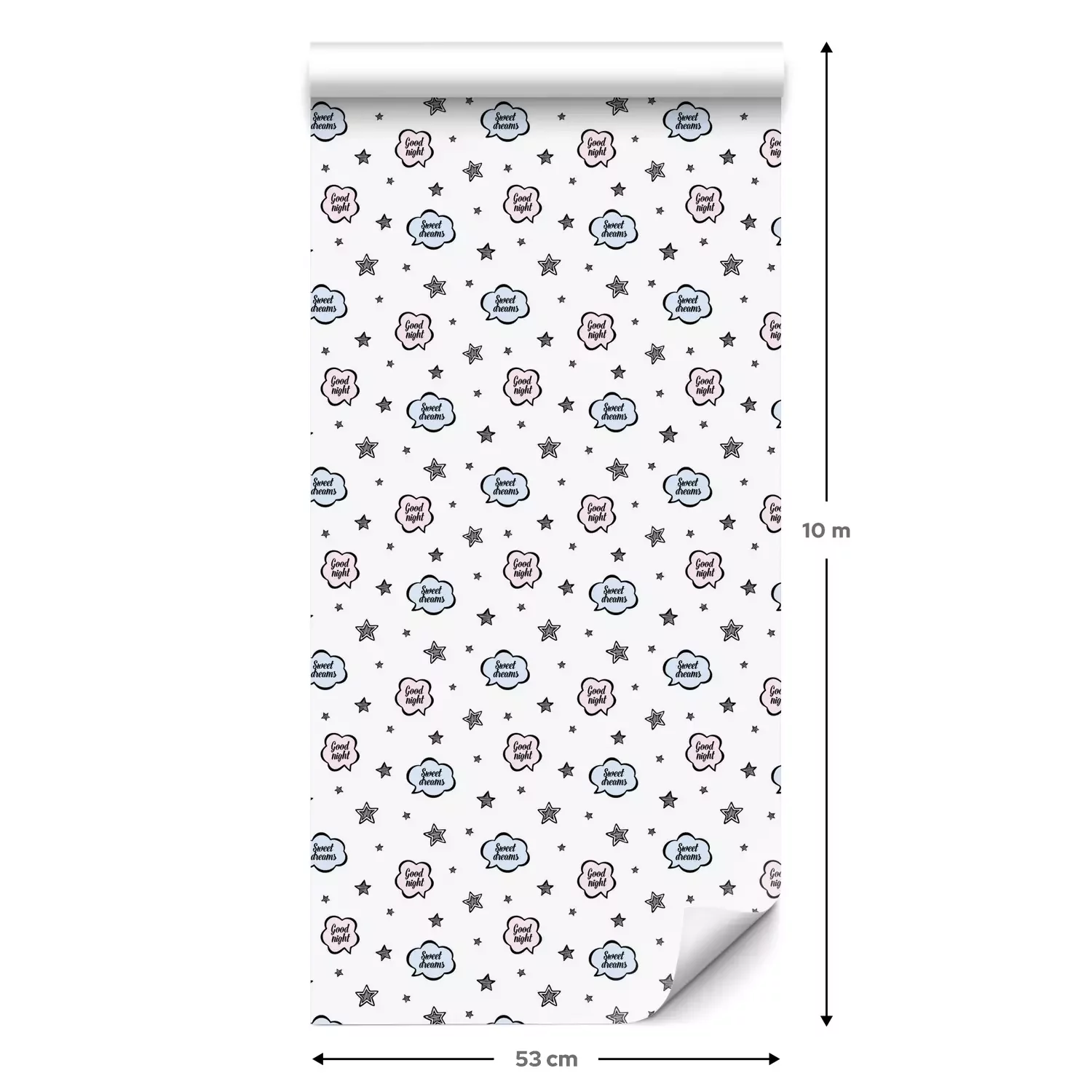 Een standaardrol behang heeft een afmeting van 0,53 m x 10 m, wat voldoende is om ongeveer 5 m² muur te bedekken.