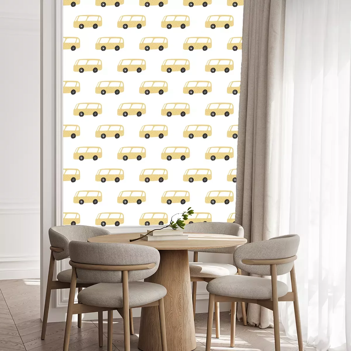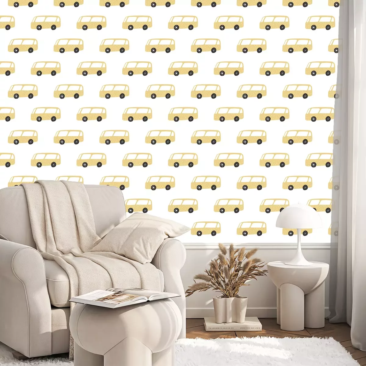 Behang met gele pastelbussen op een zachte witte achtergrond is de perfecte keuze voor een kleine jongenskamer. De subtiele stijl en aangename, zachte kleuren maken het interieur gezellig en vol energie. Het behang 'bussen' past perfect in een kinderkamer en creëert een sfeer die aanmoedigt tot creatief speelplezier en een goede nachtrust. Om de inrichting van een kamer met dit behang af te maken, is het aan te raden om accessoires en meubels te kiezen die bij het karakter passen. Je kunt verschillende kanten op bij het kiezen van accessoires voor het motief, dat wordt gedomineerd door bussen. Tourbus behang in dergelijke patronen is de moeite waard om te combineren met witte of pastelkleurige meubels. Door deze te kiezen kun je een kleurcoherente ruimte creëren. Een bed, bureau of kasten in tinten als felgeel, mintgroen of zachtblauw passen perfect bij behang. Behang bussen en andere auto's kunnen ook op accessoires staan. Het kan bijvoorbeeld beddengoed, kussens of tapijten zijn met voertuigafbeeldingen of bijpassende kleuren die de perfecte aanvulling zijn. Planken in de vorm van auto's of bussen helpen om boeken en speelgoed op te bergen en geven het interieur meer charme. De kleine kan gemakkelijk bij zijn favoriete boeken. Omdat bussen vaak reizen, kan een wereldkaart aan de muur een interessant decoratief en educatief element zijn. Hiermee kan je kind meer leren over de verschillende landen en plaatsen waar de bussen naartoe gaan. Bussen behang met automotieven en alle decoratieve elementen moeten worden geaccentueerd met verlichting: creatieve lampen in de vorm van een bus of andere voertuigen kunnen charme toevoegen aan het interieur. Goede verlichting is belangrijk om ervoor te zorgen dat er genoeg licht is om te leren en te spelen. Vergeet niet dat een balans tussen functionaliteit en esthetiek belangrijk is. De kamer moet een plek zijn waar het kind zich prettig voelt. Daarom is het raadzaam om accessoires en meubels te kiezen die aan hun doel voldoen en tegelijkertijd harmonieus passen bij het thema van de bus. Bussen behang is ook een goede weerspiegeling van de interesses van grotere jongens, dus dit bus behang zal ook goed gebruikt kunnen worden om het interieur te veranderen als het kind wat groter wordt.