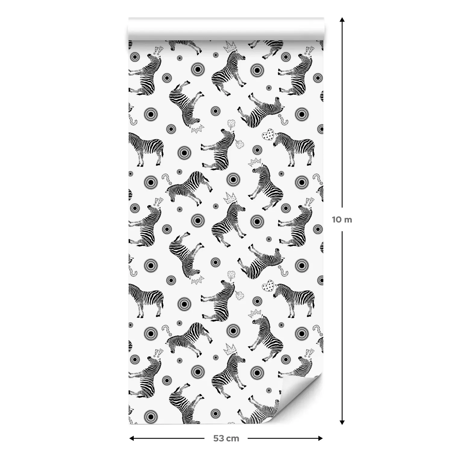 Een standaardrol behang heeft een afmeting van 0,53 m x 10 m, wat voldoende is om ongeveer 5 m² muur te bedekken.