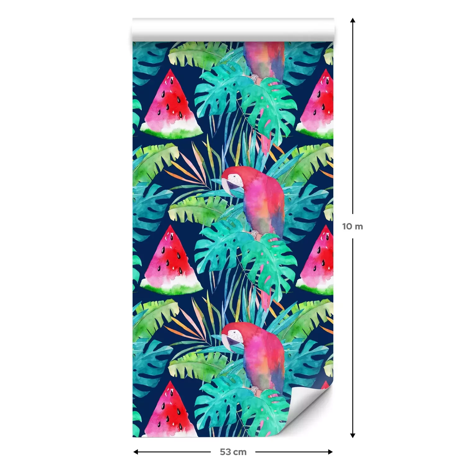 Een standaardrol behang heeft een afmeting van 0,53 m x 10 m, wat voldoende is om ongeveer 5 m² muur te bedekken.