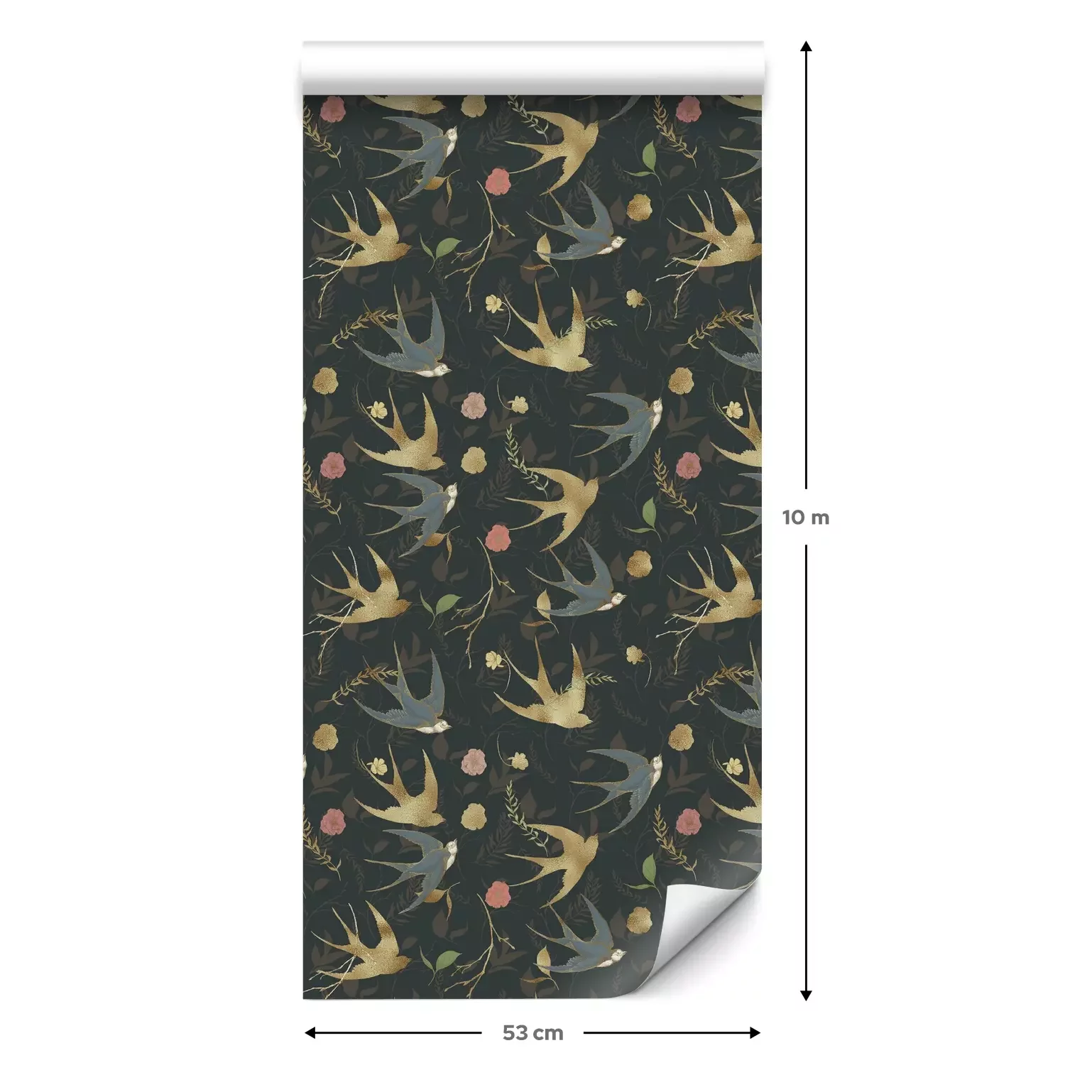Een standaardrol behang heeft een afmeting van 0,53 m x 10 m, wat voldoende is om ongeveer 5 m² muur te bedekken.
