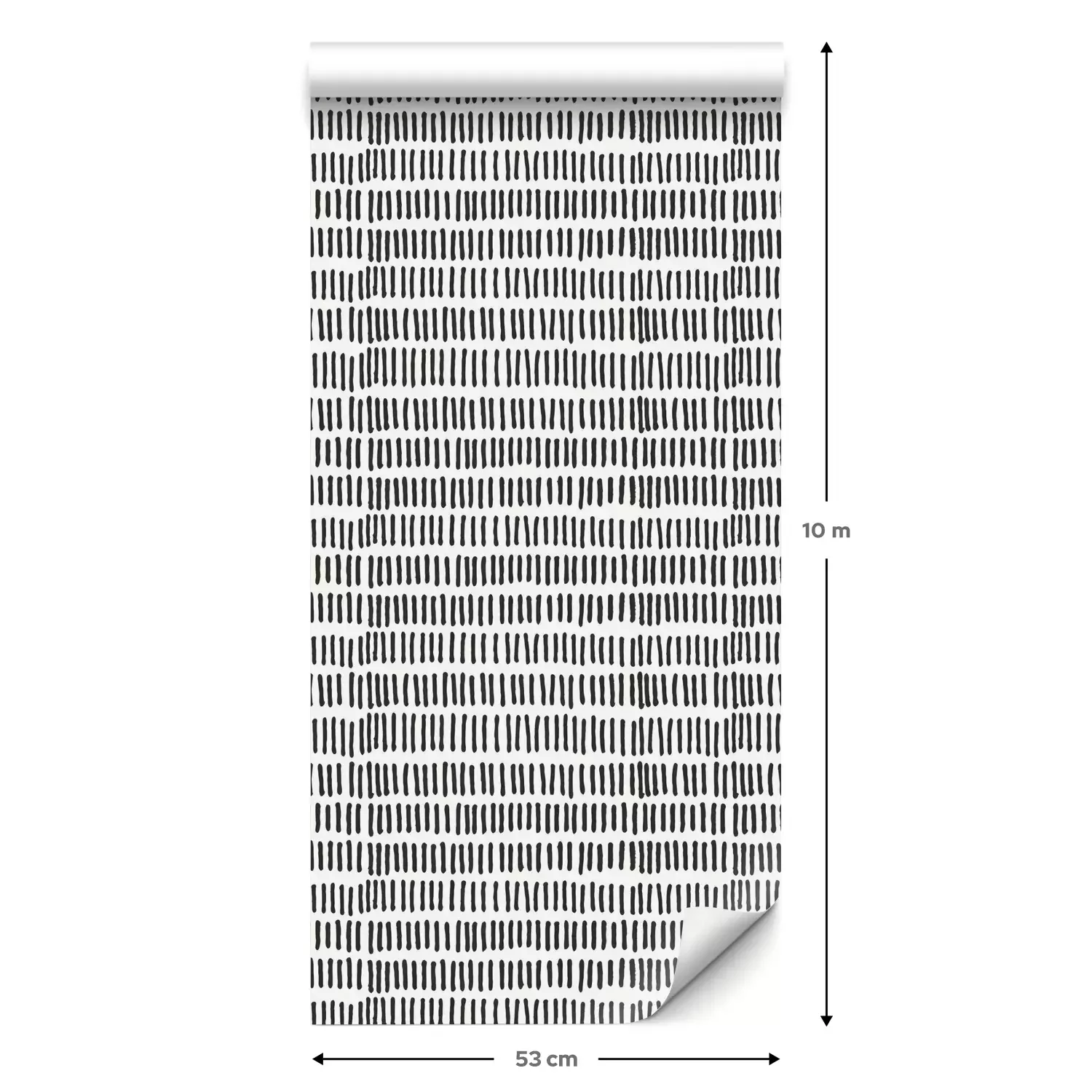 Een standaardrol behang heeft een afmeting van 0,53 m x 10 m, wat voldoende is om ongeveer 5 m² muur te bedekken.