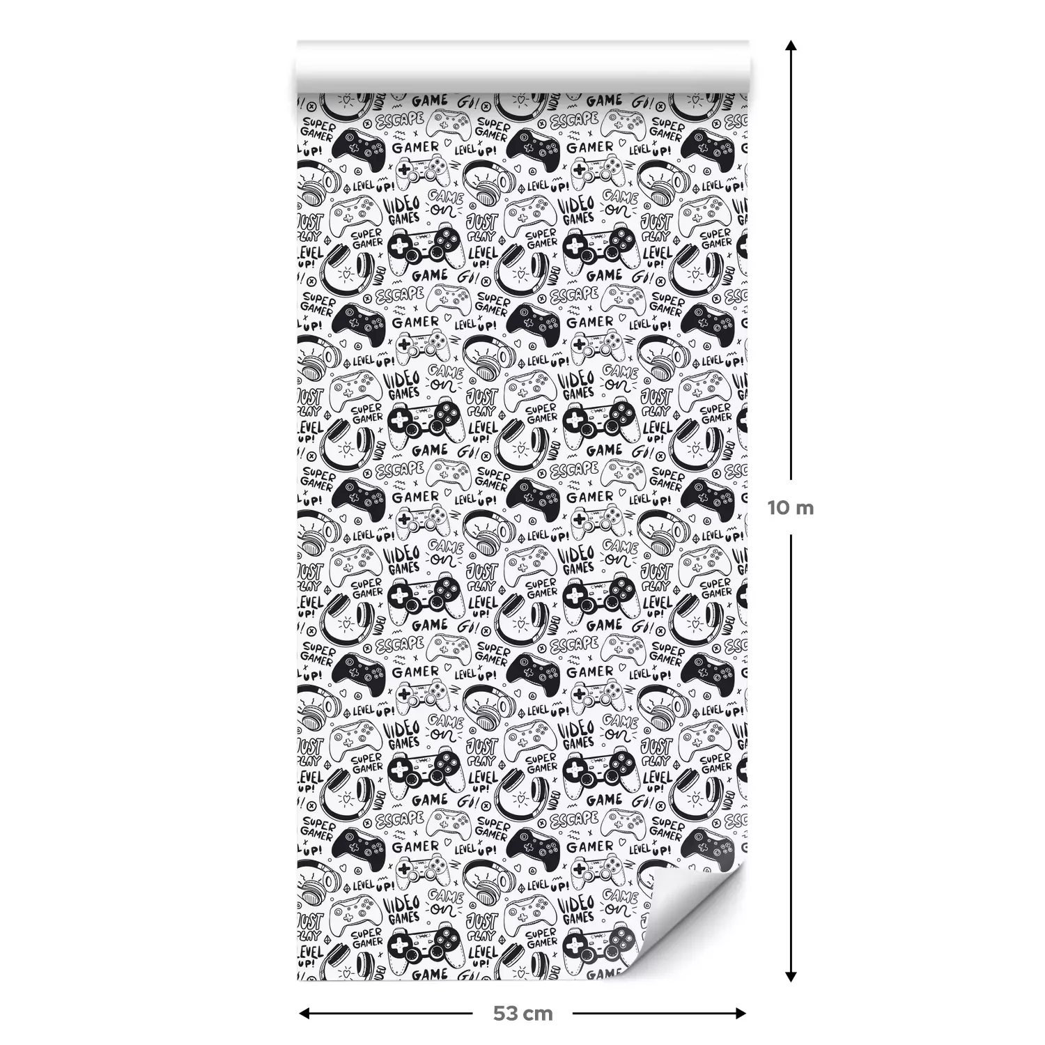 Een standaardrol behang heeft een afmeting van 0,53 m x 10 m, wat voldoende is om ongeveer 5 m² muur te bedekken.