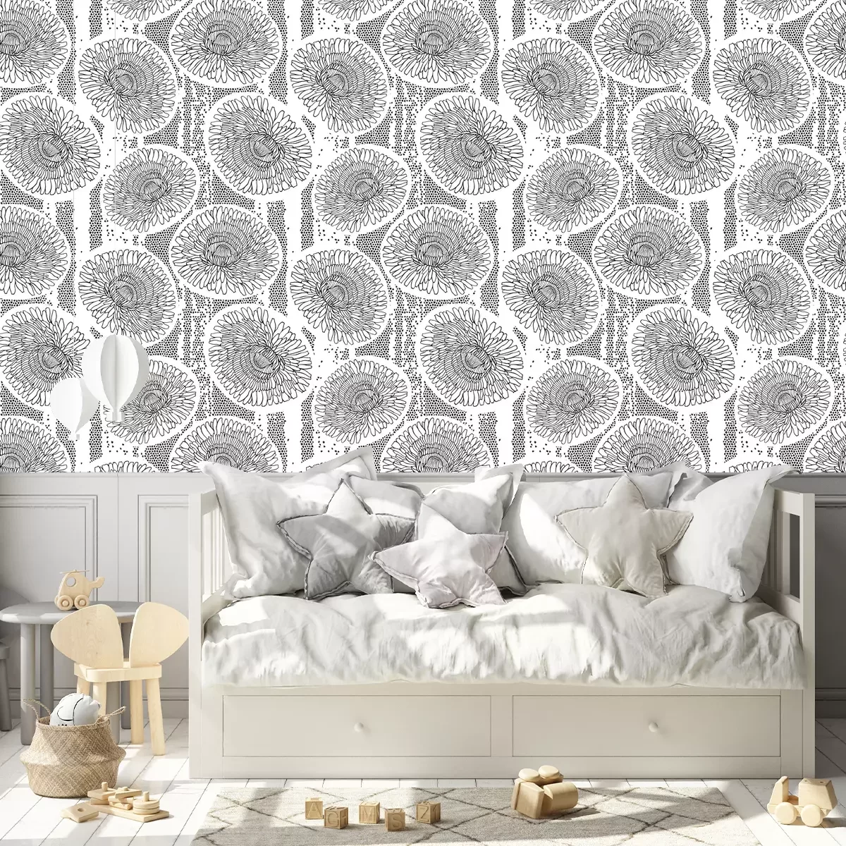 *Korting is niet van toepassing op lijmen, accessoires en cadeaubonnen.Het behang is gemaakt van hoogwaardig vliesmateriaal – duurzaam, stevig en eenvoudig aan te brengen. Op de productpagina vind je een gebruiksvriendelijke calculator die automatisch het aantal benodigde rollen berekent, zodat het winkelen nog makkelijker wordt. Het behang heeft een herhalend patroon dat we aanbieden in drie dichtheidsvarianten – normaal, gemiddeld en groot – waardoor je het motief perfect kunt afstemmen op de grootte van de ruimte. In onze winkel vind je duizenden ontwerpen, allemaal overzichtelijk ingedeeld in praktische categorieën.
