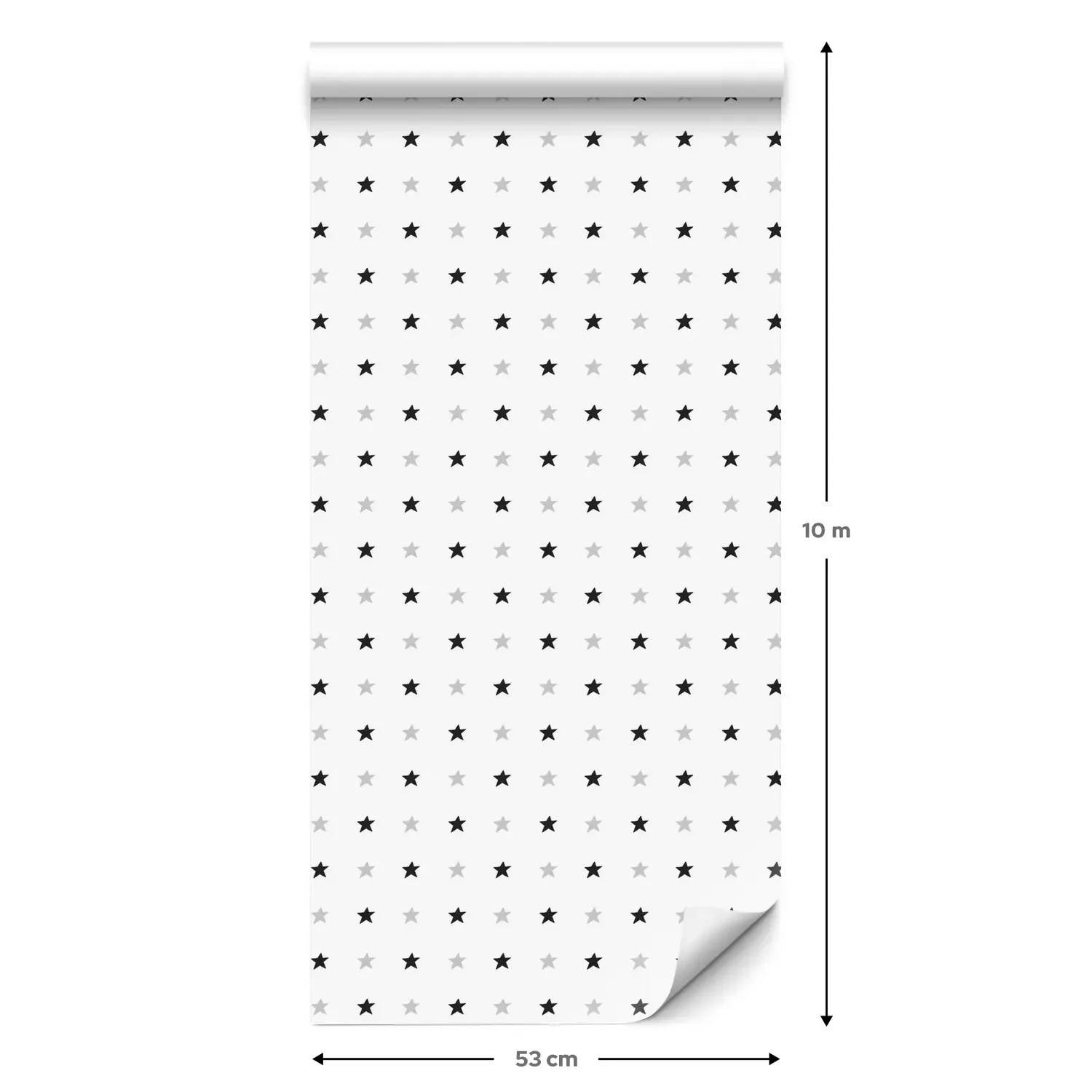Een standaardrol behang heeft een afmeting van 0,53 m x 10 m, wat voldoende is om ongeveer 5 m² muur te bedekken.