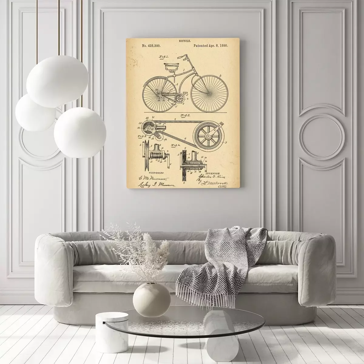 Canvas 1890 Patent Velocipede Bicycle history  invention