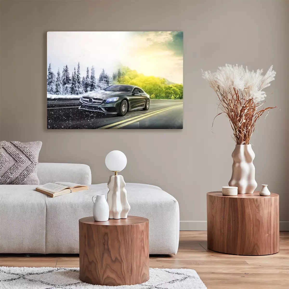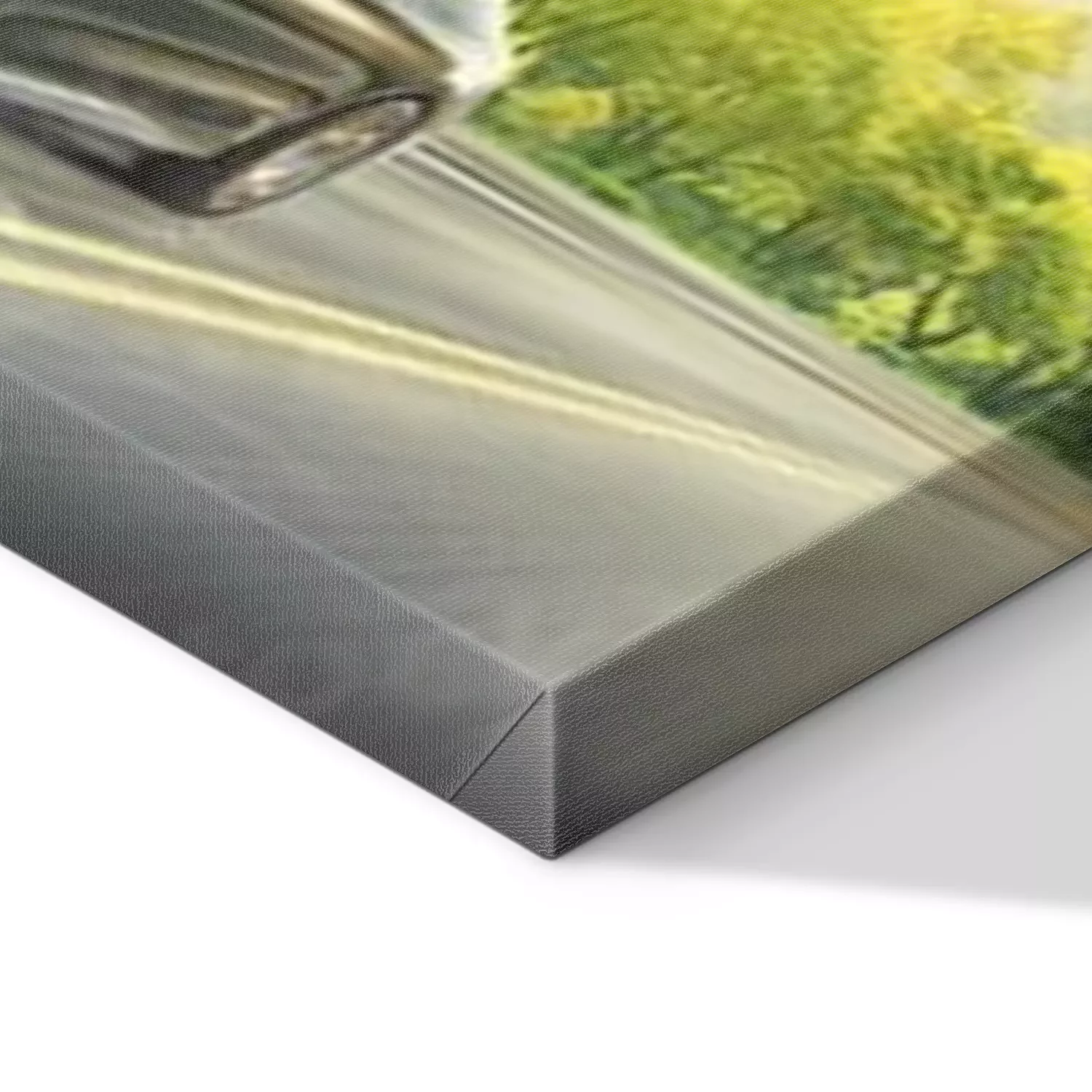 De print wordt aangebracht op hoogwaardig canvas dat op een schildersweefgetouw (spieraam) wordt gespannen. Omdat de print de zijranden bedekt, hoeft het ontwerp niet met een extra kader te worden omlijst. Wij raden ook composities aan die uit meerdere foto's bestaan en zo een coherente compositie vormen.