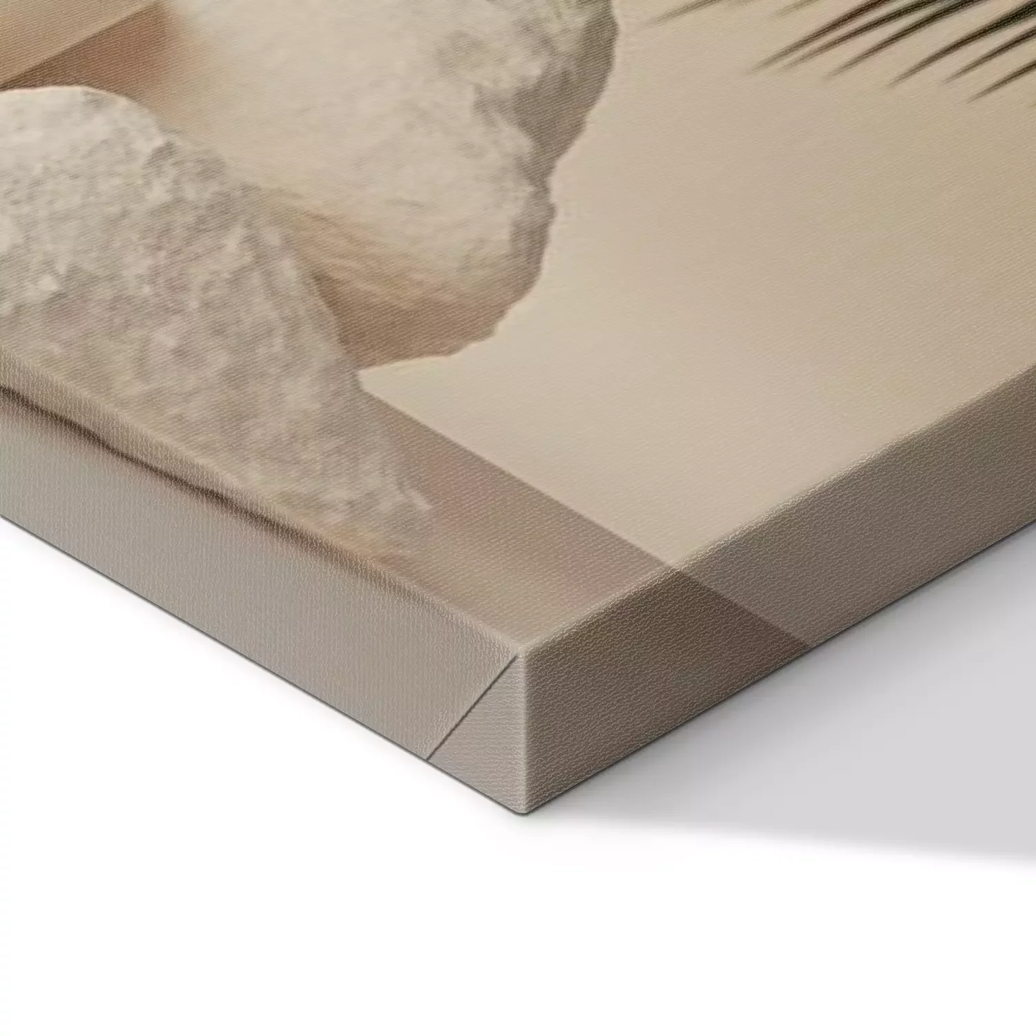 De print wordt aangebracht op hoogwaardig canvas dat op een schildersweefgetouw (spieraam) wordt gespannen. Omdat de print de zijranden bedekt, hoeft het ontwerp niet met een extra kader te worden omlijst. Wij raden ook composities aan die uit meerdere foto's bestaan en zo een coherente compositie vormen.