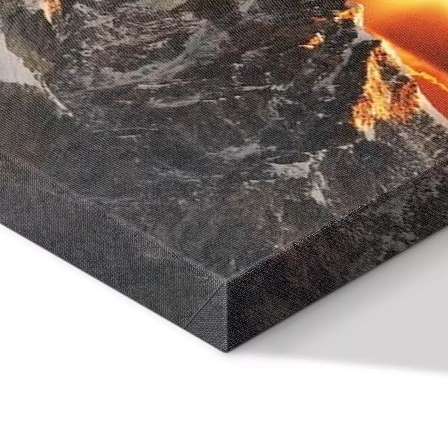 De print wordt aangebracht op hoogwaardig canvas dat op een schildersweefgetouw (spieraam) wordt gespannen. Omdat de print de zijranden bedekt, hoeft het ontwerp niet met een extra kader te worden omlijst. Wij raden ook composities aan die uit meerdere foto's bestaan en zo een coherente compositie vormen.
