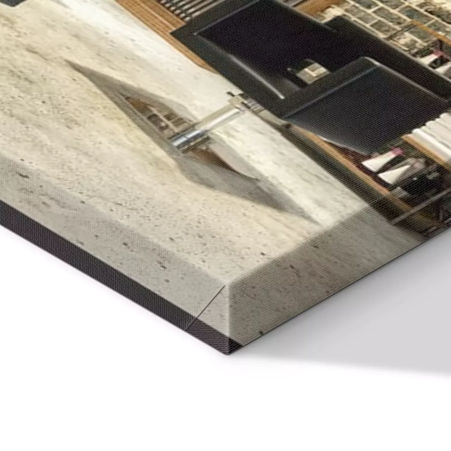 De print wordt aangebracht op hoogwaardig canvas dat op een schildersweefgetouw (spieraam) wordt gespannen. Omdat de print de zijranden bedekt, hoeft het ontwerp niet met een extra kader te worden omlijst. Wij raden ook composities aan die uit meerdere foto's bestaan en zo een coherente compositie vormen.