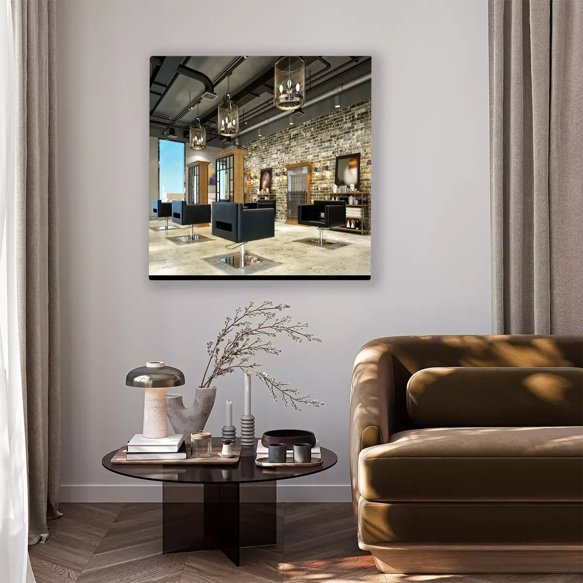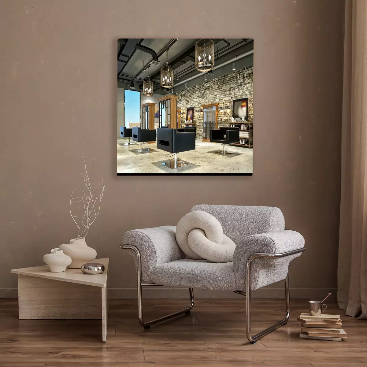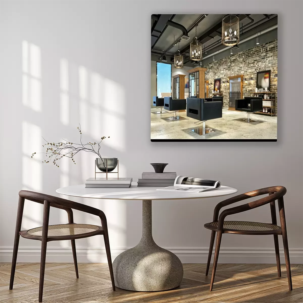 Canvas 3d geef van kapperszaal terug