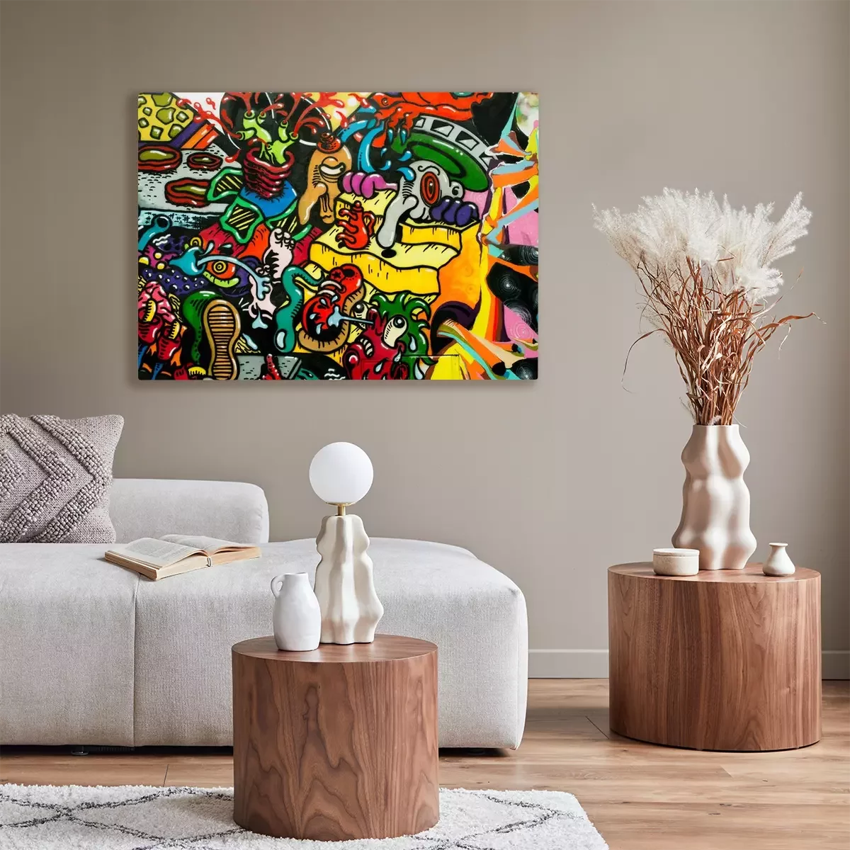 De print wordt aangebracht op hoogwaardig canvas dat op een schildersweefgetouw (spieraam) wordt gespannen. Omdat de print de zijranden bedekt, hoeft het ontwerp niet met een extra kader te worden omlijst. Wij raden ook composities aan die uit meerdere foto's bestaan en zo een coherente compositie vormen.