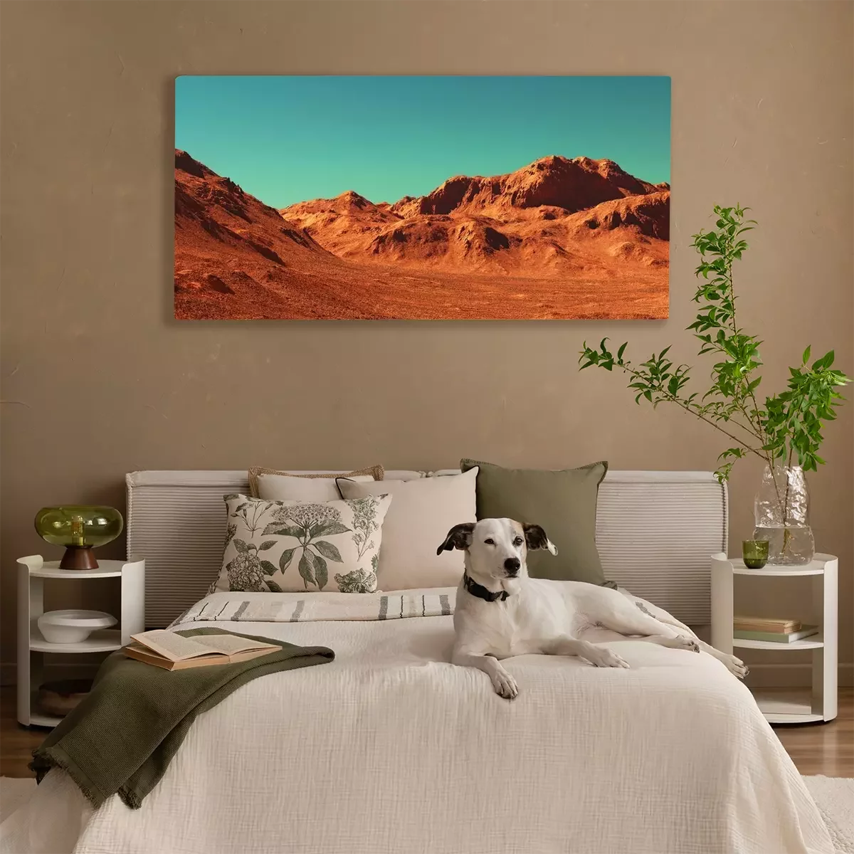 Canvas 3d het landschap van Mars, geeft van denkbeeldig terug marsplaneetterrein, science fictionillustratie.