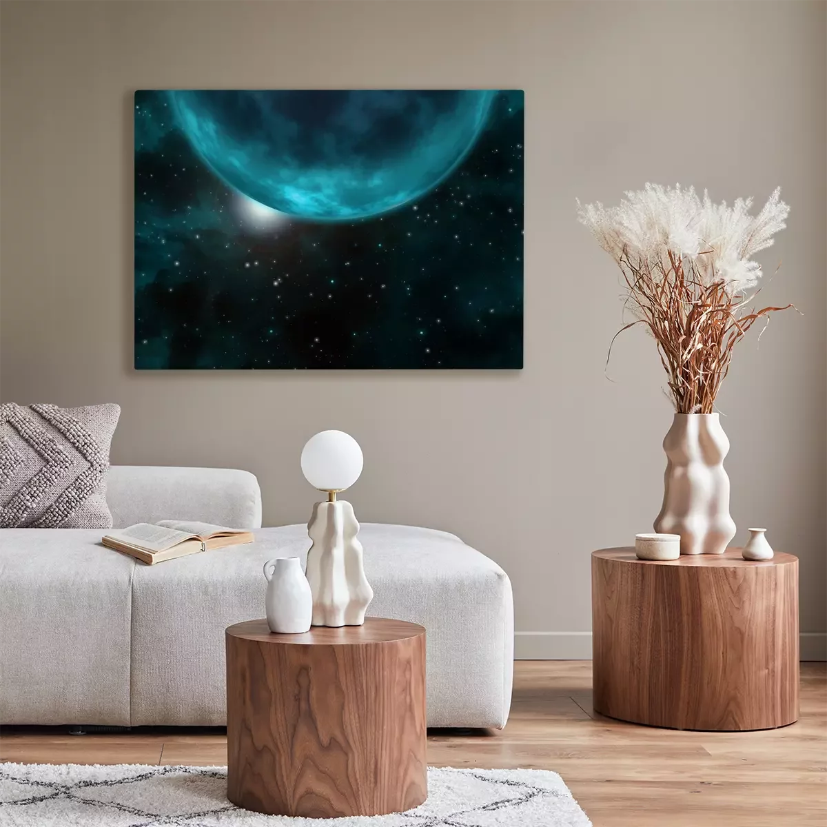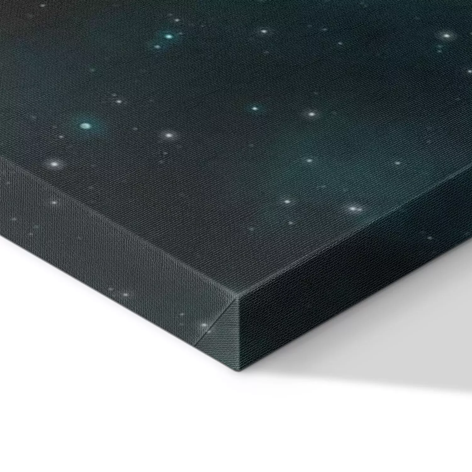 De print wordt aangebracht op hoogwaardig canvas dat op een schildersweefgetouw (spieraam) wordt gespannen. Omdat de print de zijranden bedekt, hoeft het ontwerp niet met een extra kader te worden omlijst. Wij raden ook composities aan die uit meerdere foto's bestaan en zo een coherente compositie vormen.