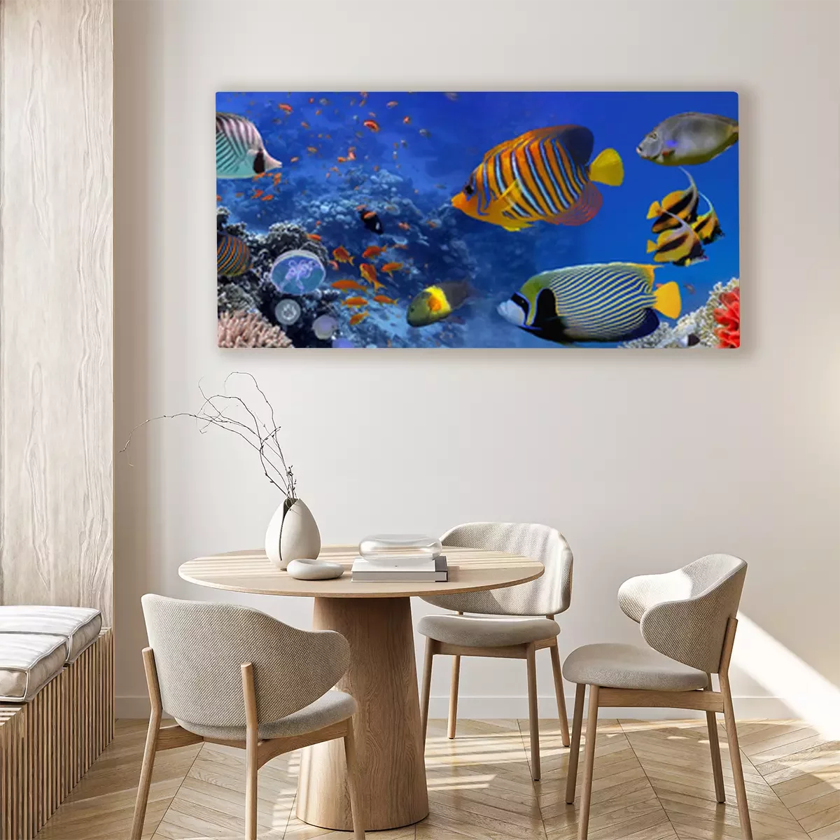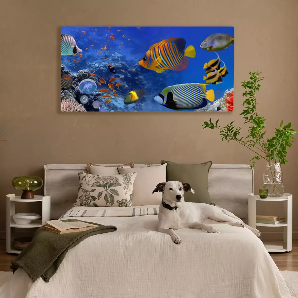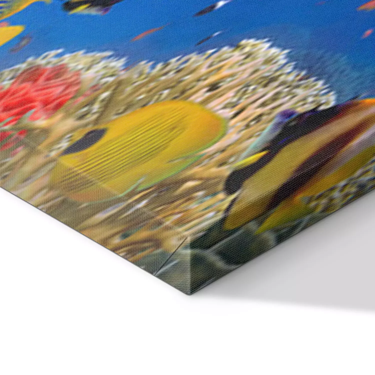 De print wordt aangebracht op hoogwaardig canvas dat op een schildersweefgetouw (spieraam) wordt gespannen. Omdat de print de zijranden bedekt, hoeft het ontwerp niet met een extra kader te worden omlijst. Wij raden ook composities aan die uit meerdere foto's bestaan en zo een coherente compositie vormen.