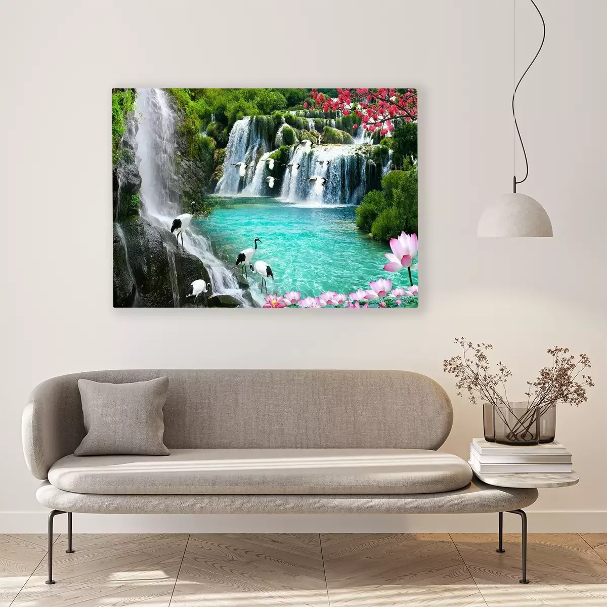 De print wordt aangebracht op hoogwaardig canvas dat op een schildersweefgetouw (spieraam) wordt gespannen. Omdat de print de zijranden bedekt, hoeft het ontwerp niet met een extra kader te worden omlijst. Wij raden ook composities aan die uit meerdere foto's bestaan en zo een coherente compositie vormen.