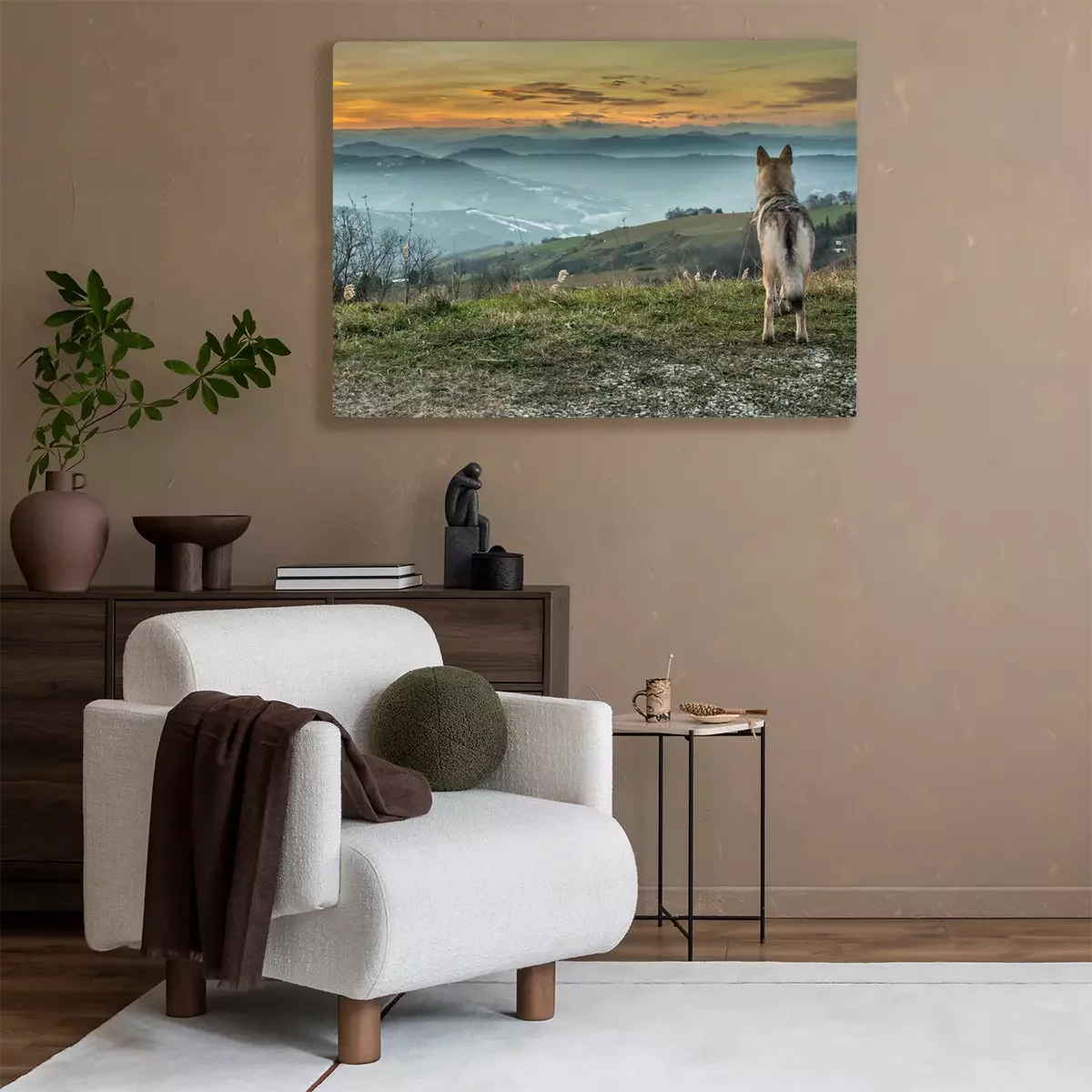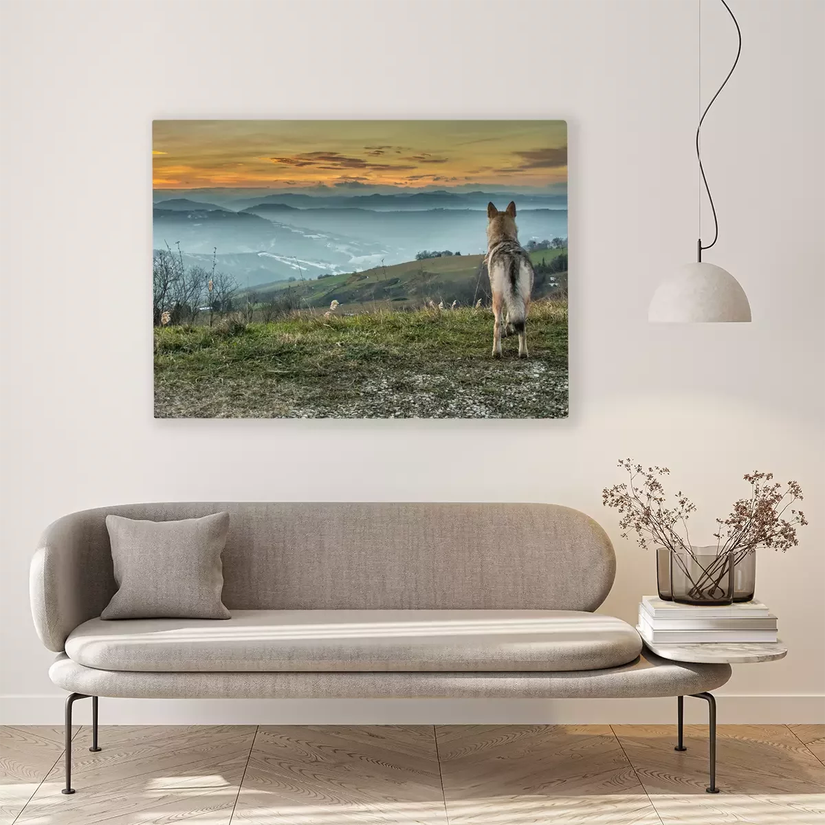 De print wordt aangebracht op hoogwaardig canvas dat op een schildersweefgetouw (spieraam) wordt gespannen. Omdat de print de zijranden bedekt, hoeft het ontwerp niet met een extra kader te worden omlijst. Wij raden ook composities aan die uit meerdere foto's bestaan en zo een coherente compositie vormen.
