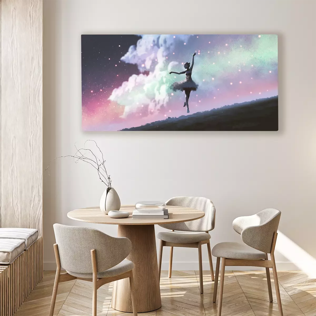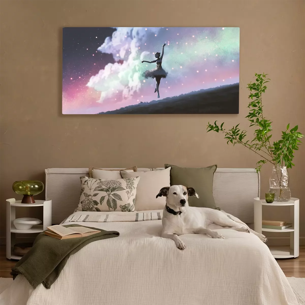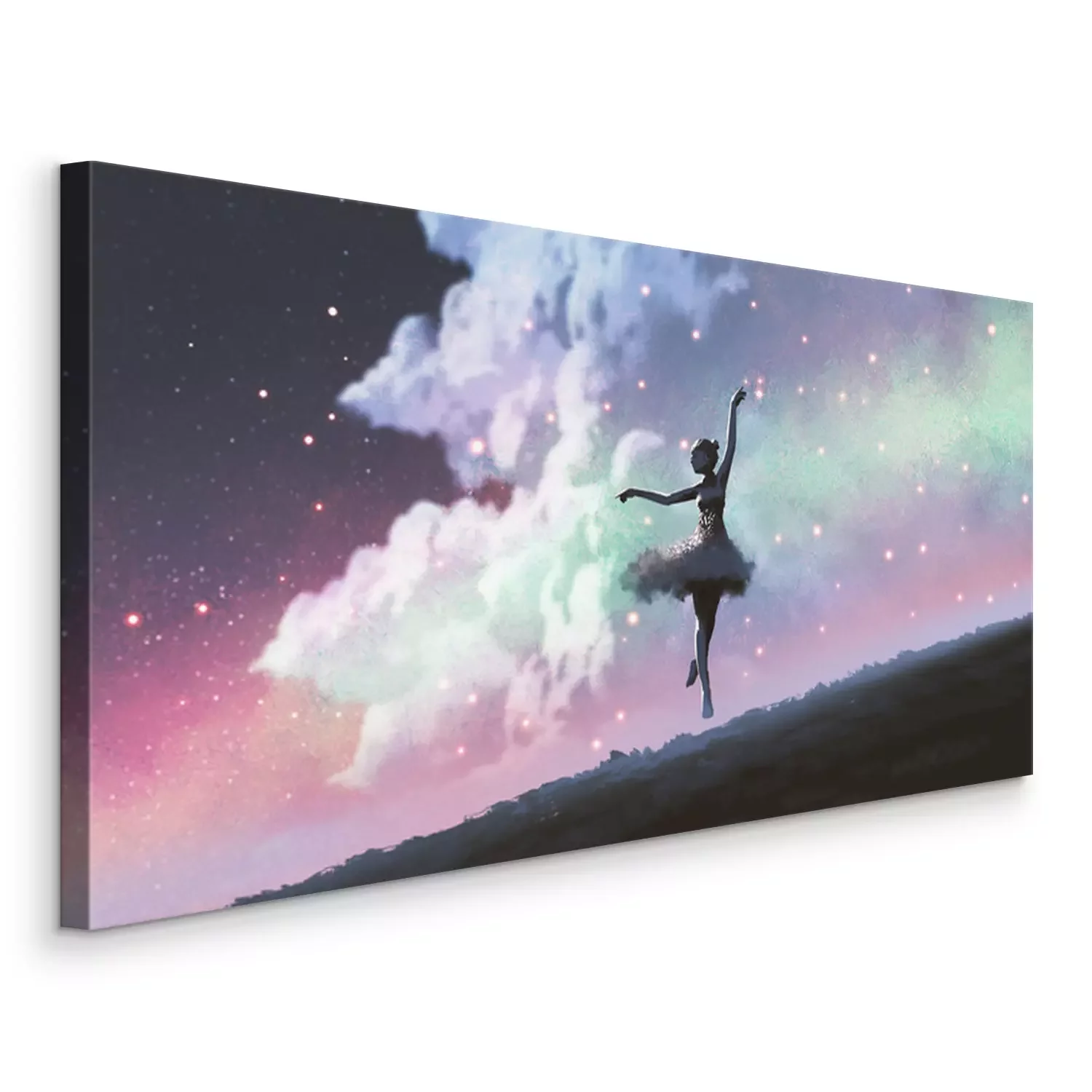 Canvas a ballerina dancing with fireflies on the hill against the night sky, digital art style, illustration painting