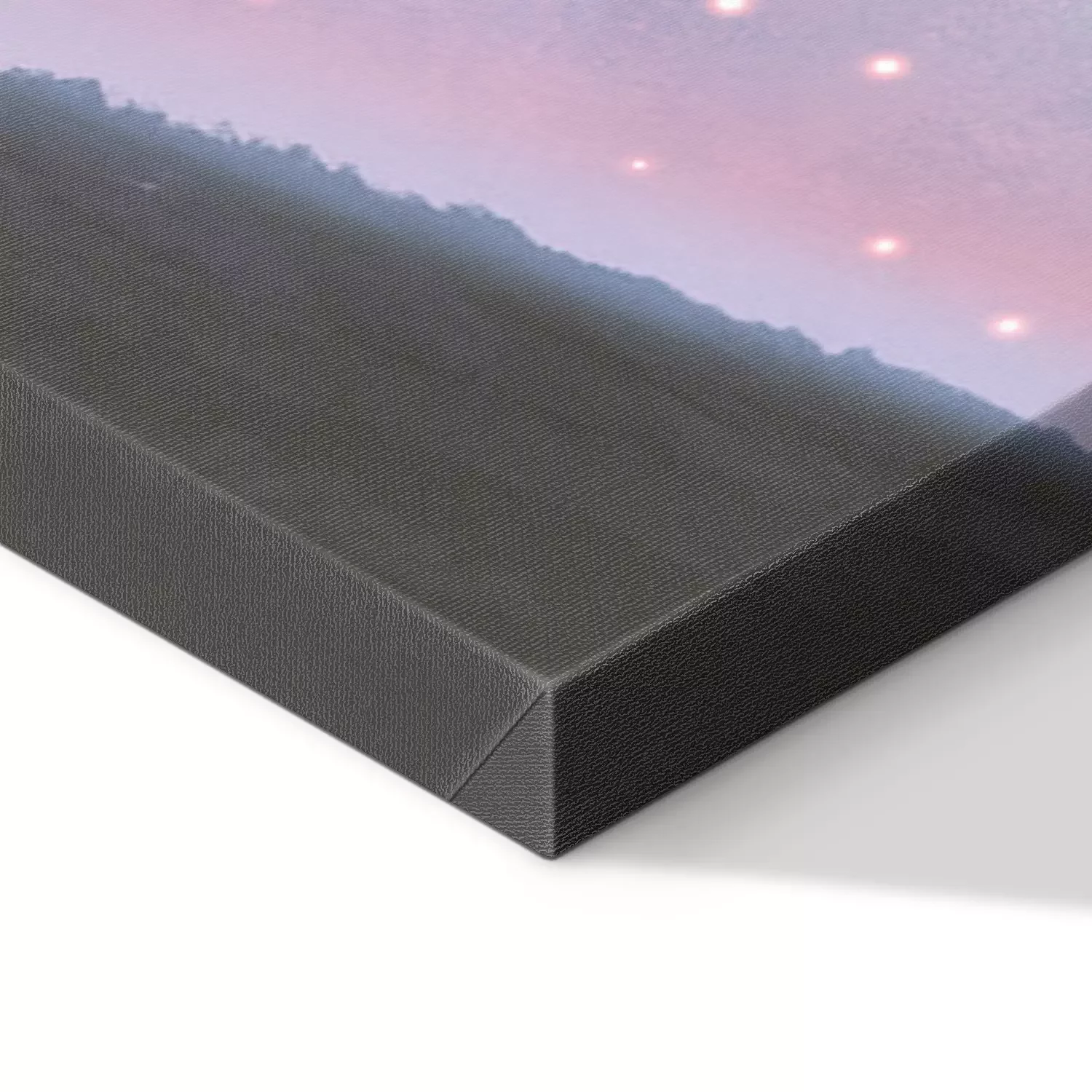 De print wordt aangebracht op hoogwaardig canvas dat op een schildersweefgetouw (spieraam) wordt gespannen. Omdat de print de zijranden bedekt, hoeft het ontwerp niet met een extra kader te worden omlijst. Wij raden ook composities aan die uit meerdere foto's bestaan en zo een coherente compositie vormen.