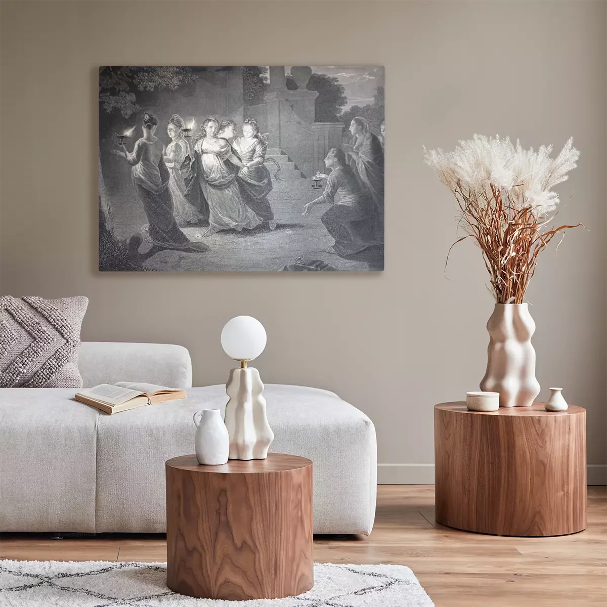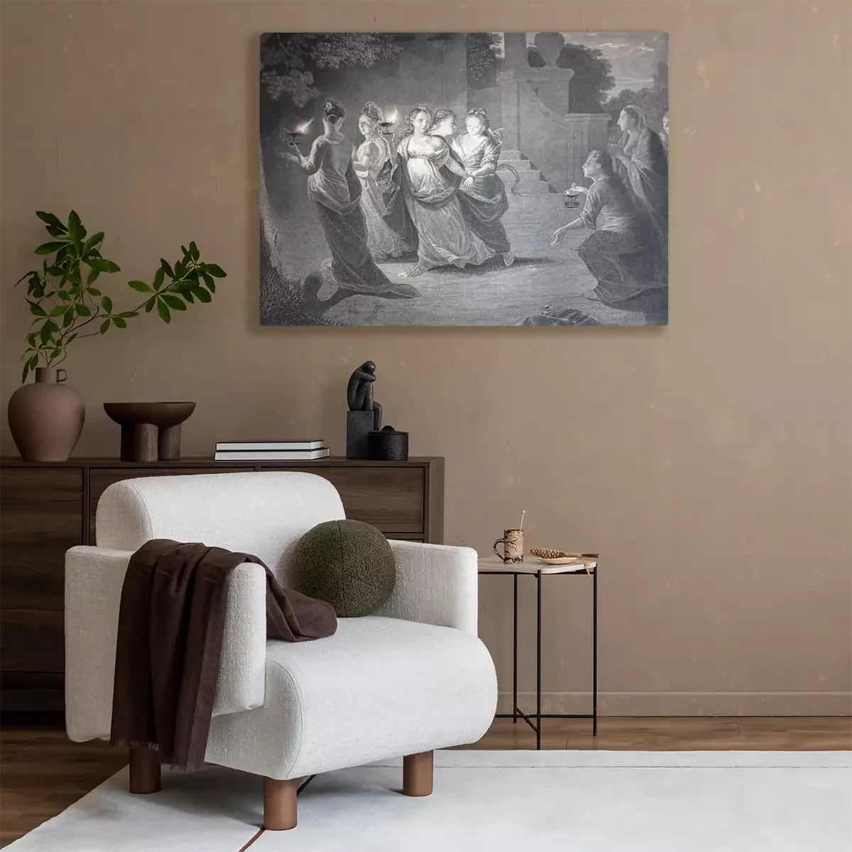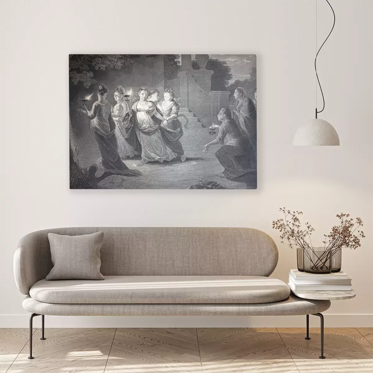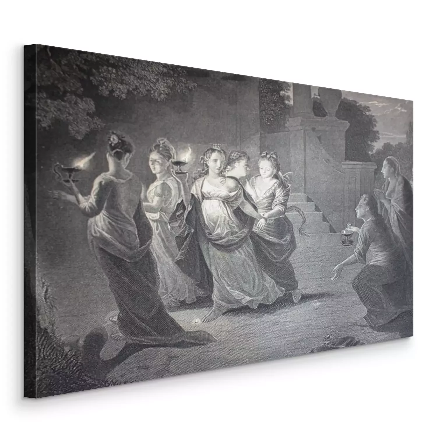 Canvas A Proverb of Wise and Foolish Girls by Godfried Schalcken engraved in the vintage book the Painting Galleries of Europe, by M.O. Wolf, 1863