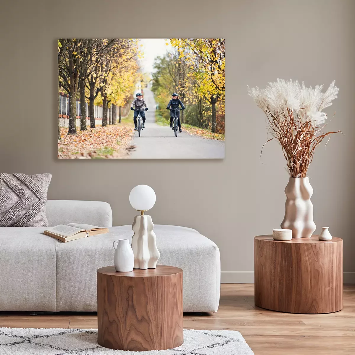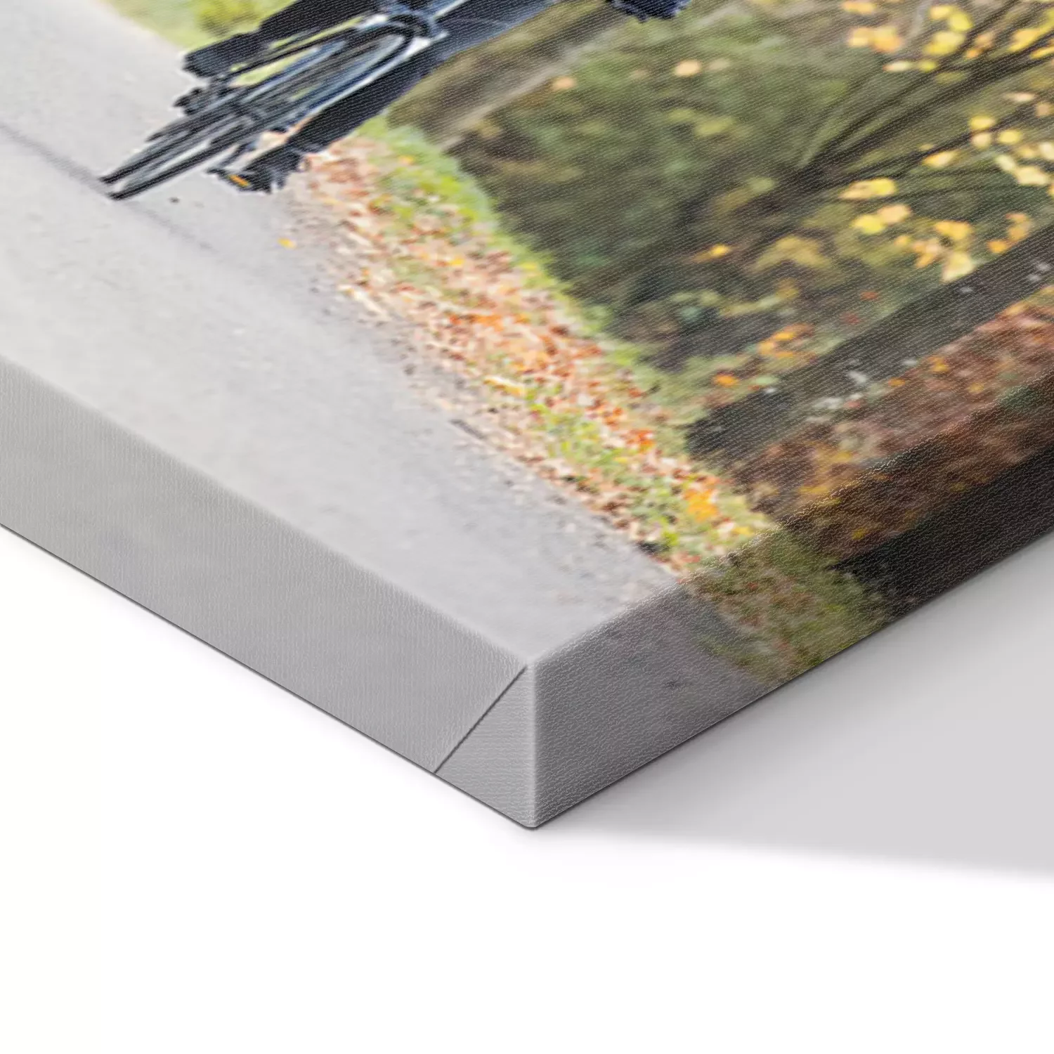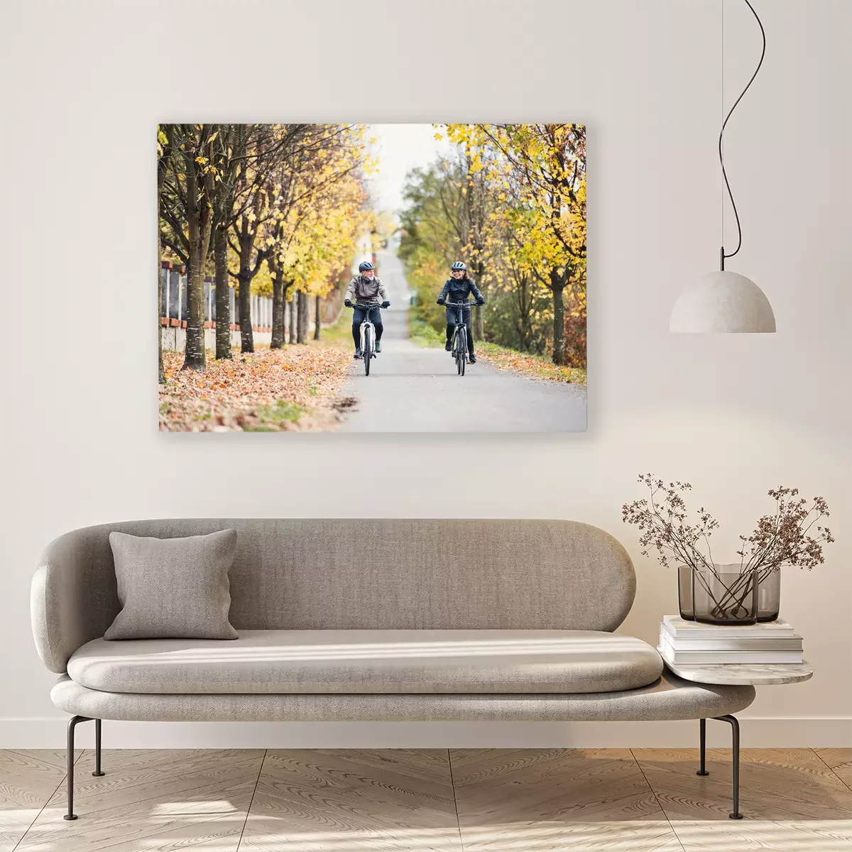 De print wordt aangebracht op hoogwaardig canvas dat op een schildersweefgetouw (spieraam) wordt gespannen. Omdat de print de zijranden bedekt, hoeft het ontwerp niet met een extra kader te worden omlijst. Wij raden ook composities aan die uit meerdere foto's bestaan en zo een coherente compositie vormen.