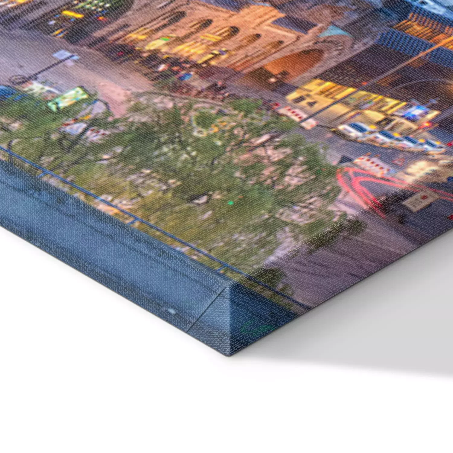 De print wordt aangebracht op hoogwaardig canvas dat op een schildersweefgetouw (spieraam) wordt gespannen. Omdat de print de zijranden bedekt, hoeft het ontwerp niet met een extra kader te worden omlijst. Wij raden ook composities aan die uit meerdere foto's bestaan en zo een coherente compositie vormen.