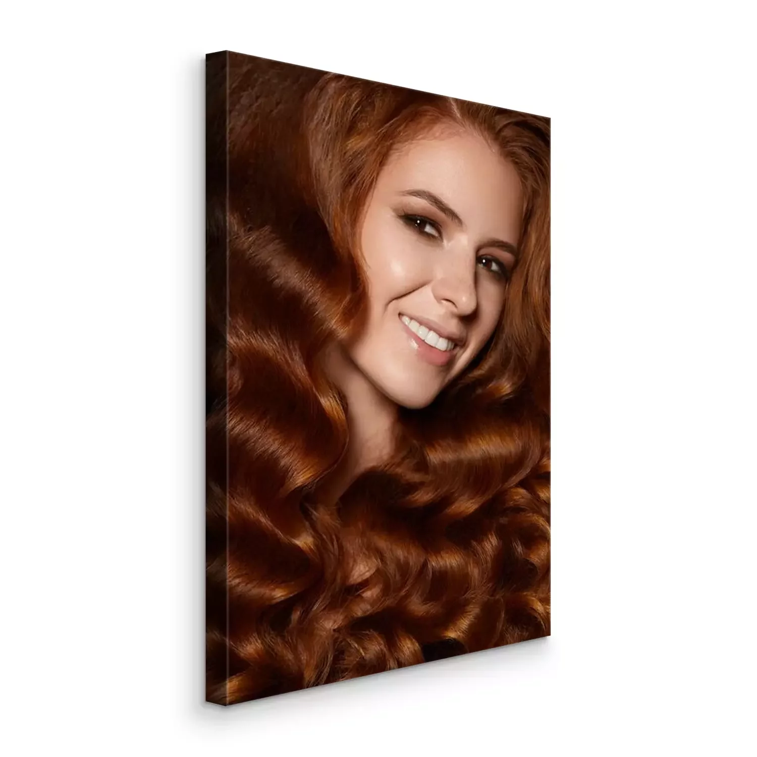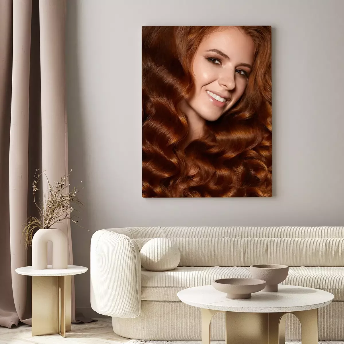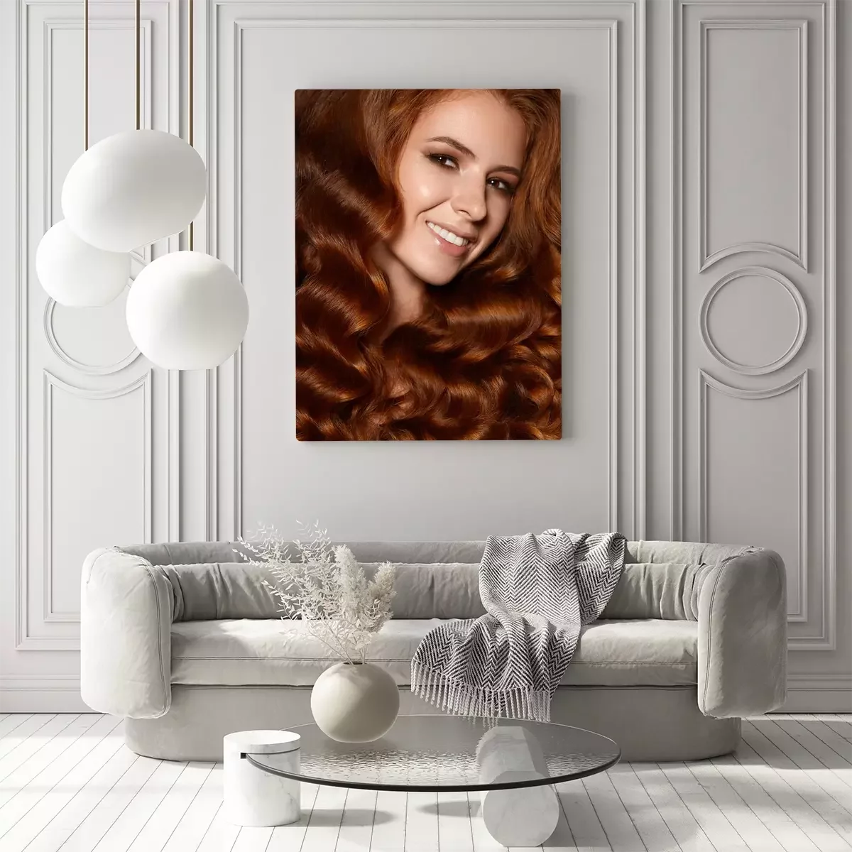 Canvas: Aantrekkelijke gember vrouw met golf kapsel krullend in studio roodharige
