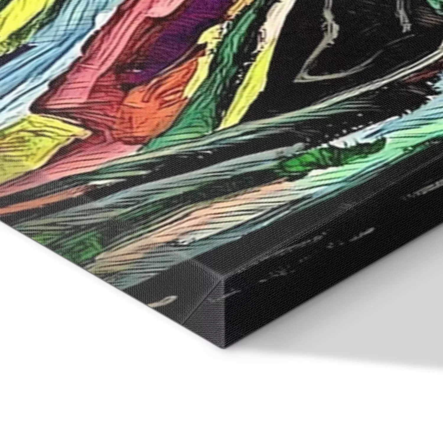 De print wordt aangebracht op hoogwaardig canvas dat op een schildersweefgetouw (spieraam) wordt gespannen. Omdat de print de zijranden bedekt, hoeft het ontwerp niet met een extra kader te worden omlijst. Wij raden ook composities aan die uit meerdere foto's bestaan en zo een coherente compositie vormen.