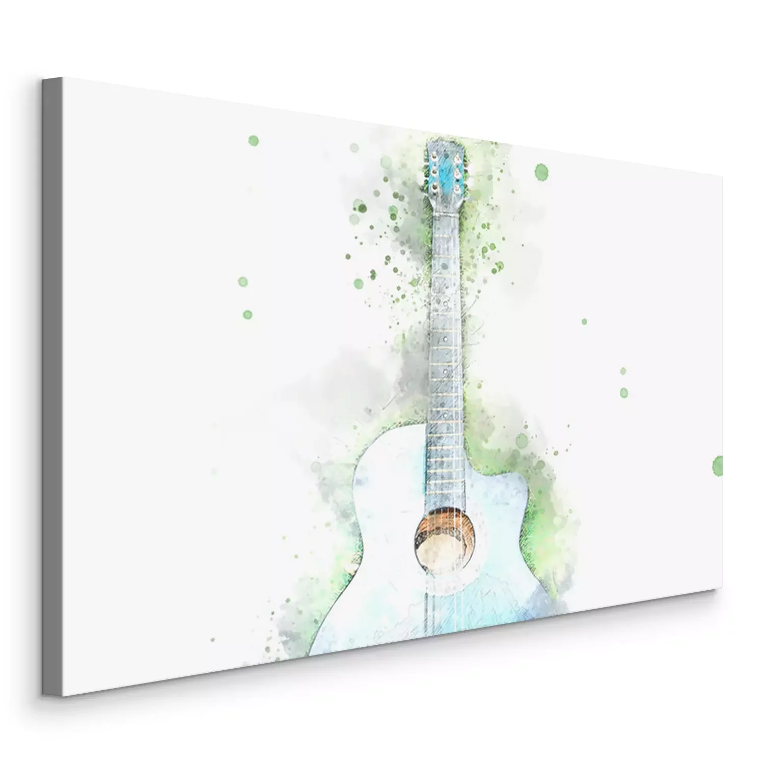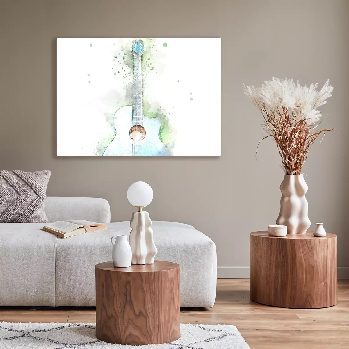 Canvas Abstract acoustic guitar on green grass on watercolor illustration painting background.