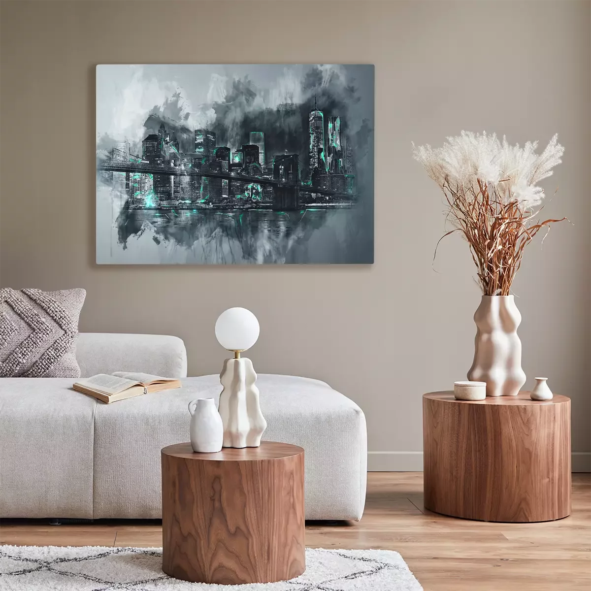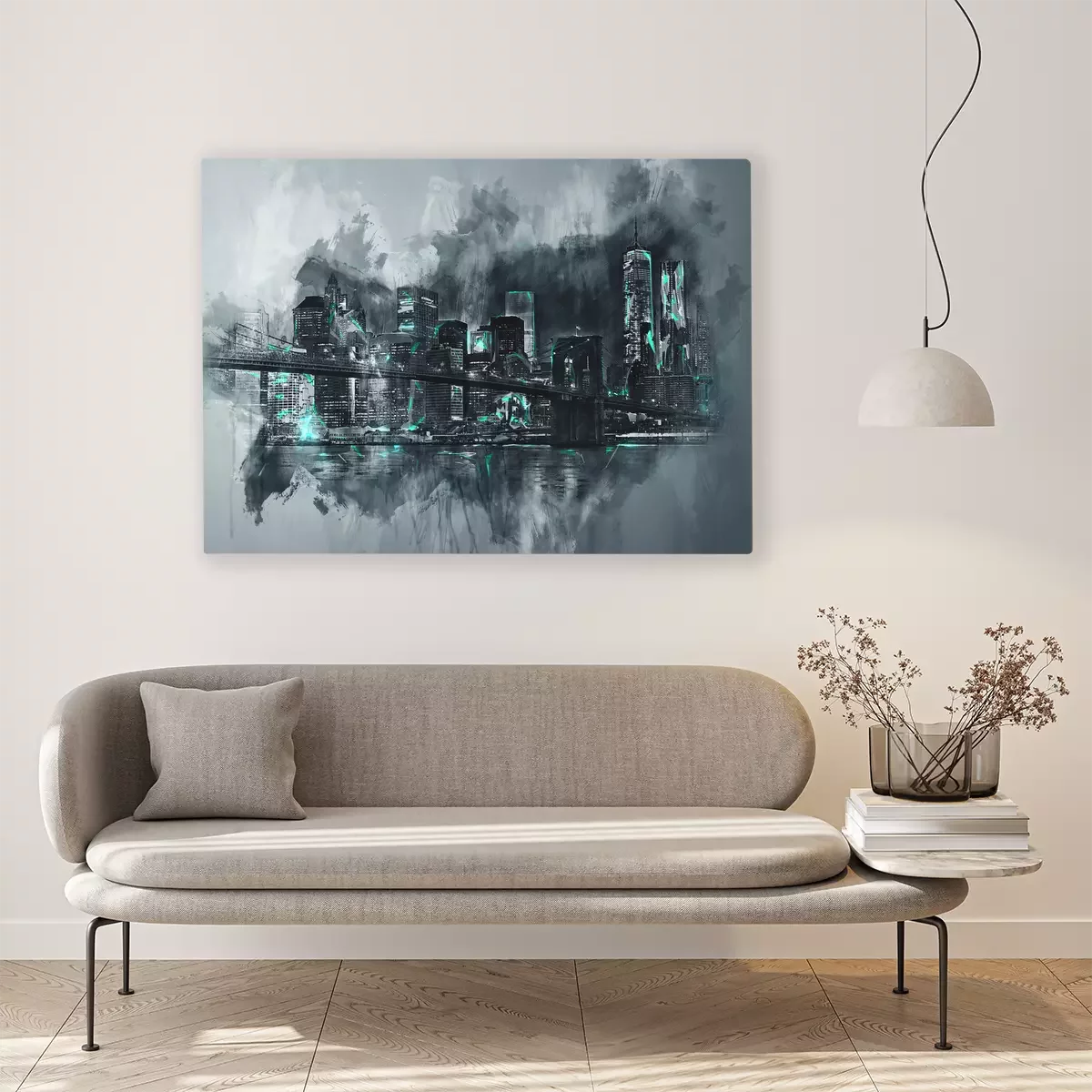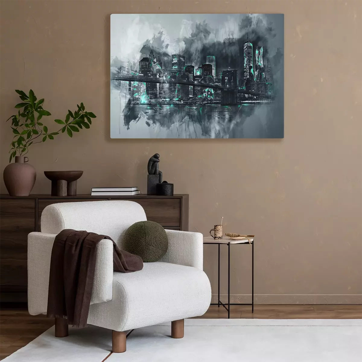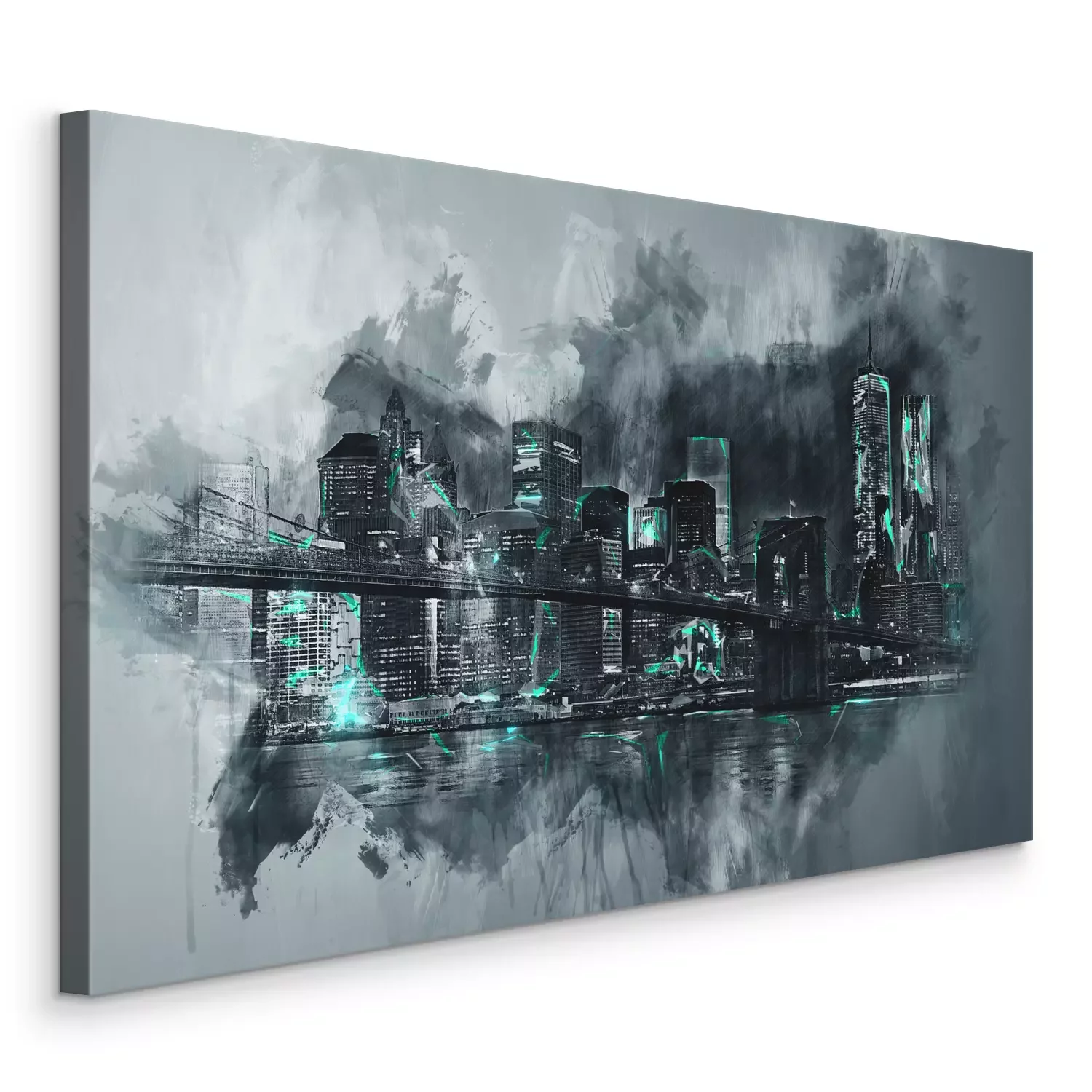 Canvas: Abstract aquarel van de Brooklyn Bridge in New York