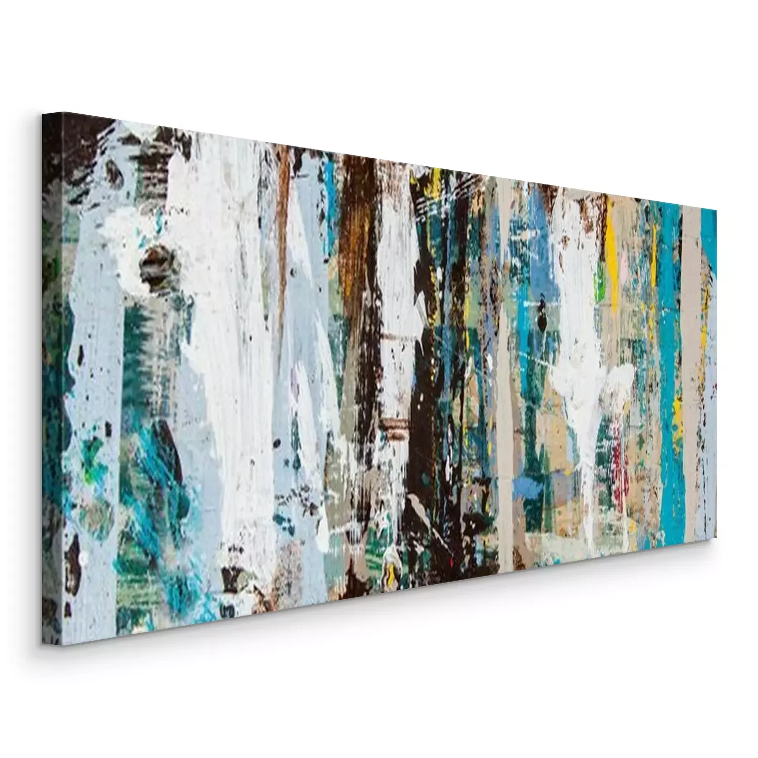 Canvas Abstract art with splashes of multicolor paint, as a fun, creative & inspirational background texture - in long panorama / banner.