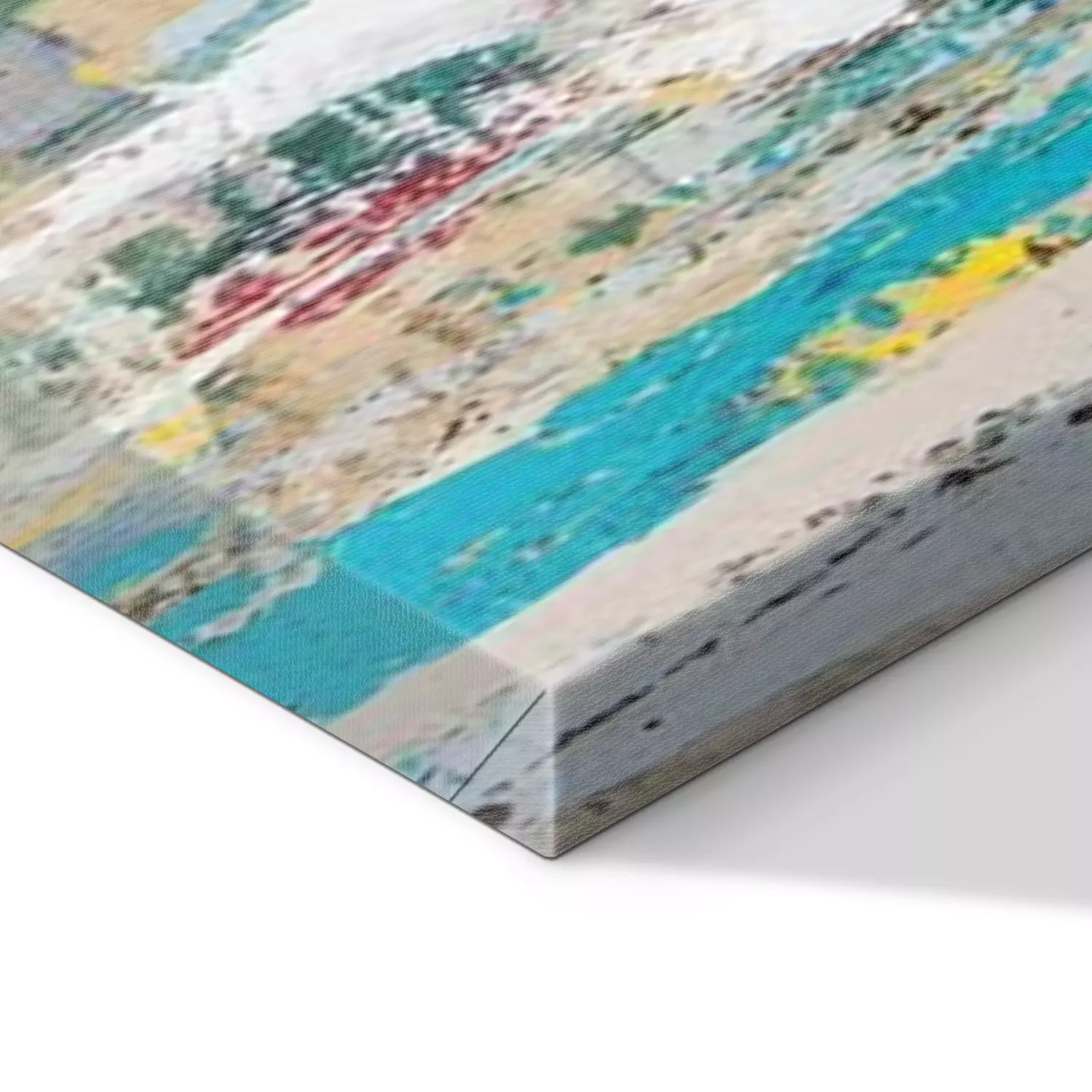 De print wordt aangebracht op hoogwaardig canvas dat op een schildersweefgetouw (spieraam) wordt gespannen. Omdat de print de zijranden bedekt, hoeft het ontwerp niet met een extra kader te worden omlijst. Wij raden ook composities aan die uit meerdere foto's bestaan en zo een coherente compositie vormen.