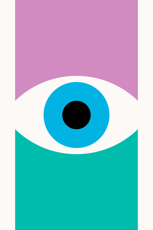 Canvas: Abstract Bauhaus-oog met kleurblokken
