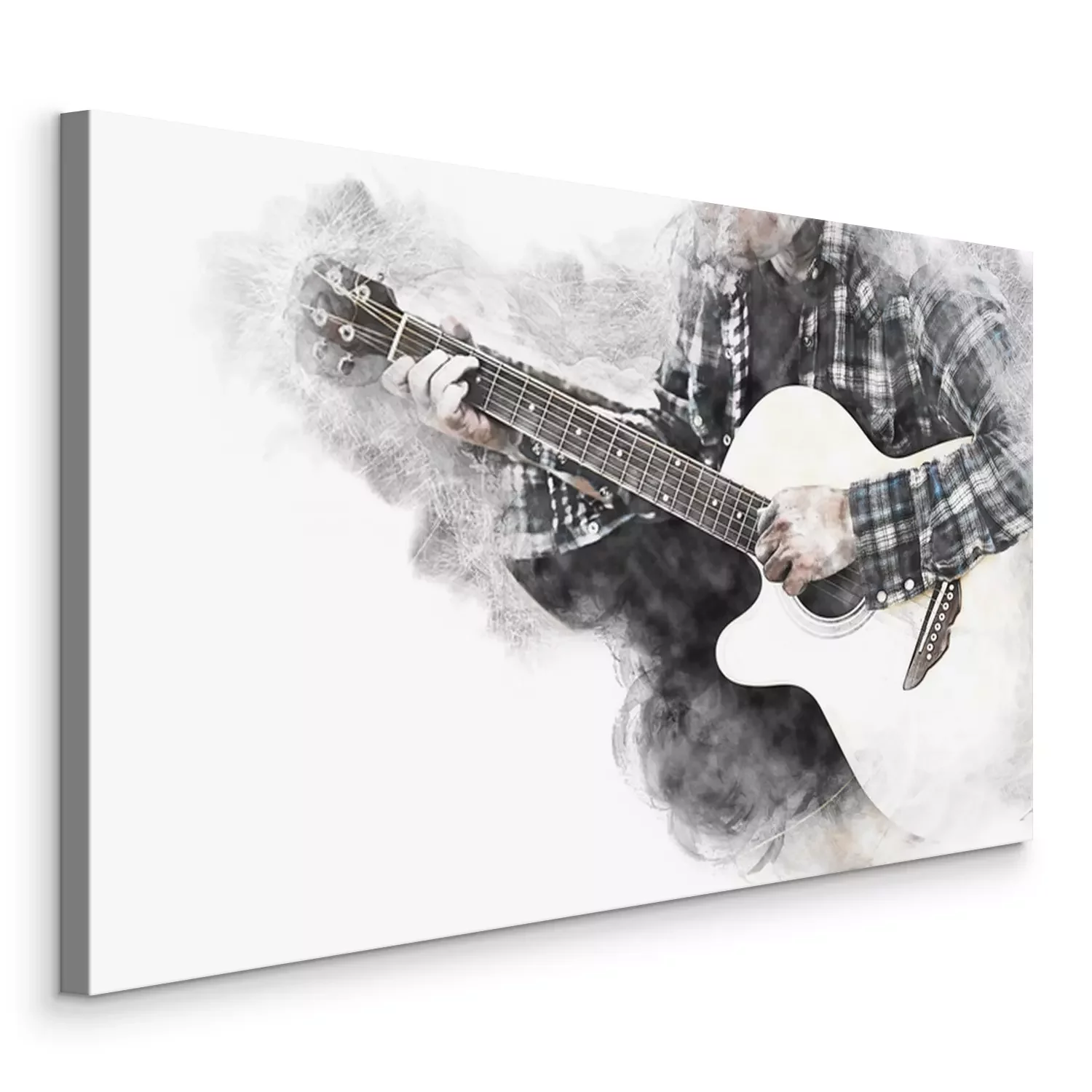 Canvas Abstract beautiful man guitarist playing acoustic guitar in the foreground on Watercolor painting background and Digital illustration brush to art.