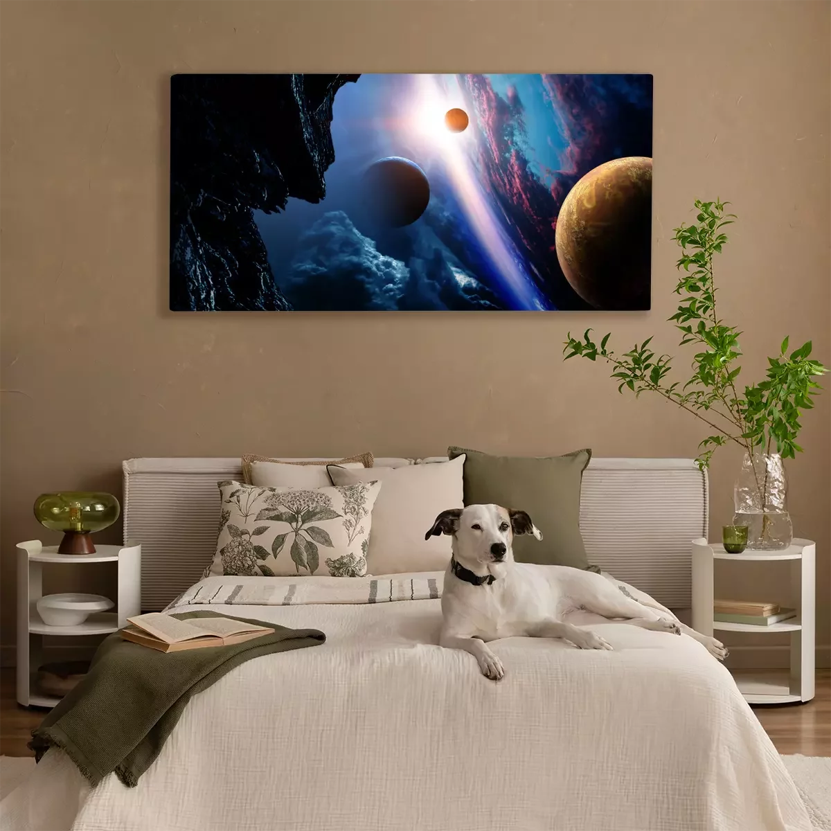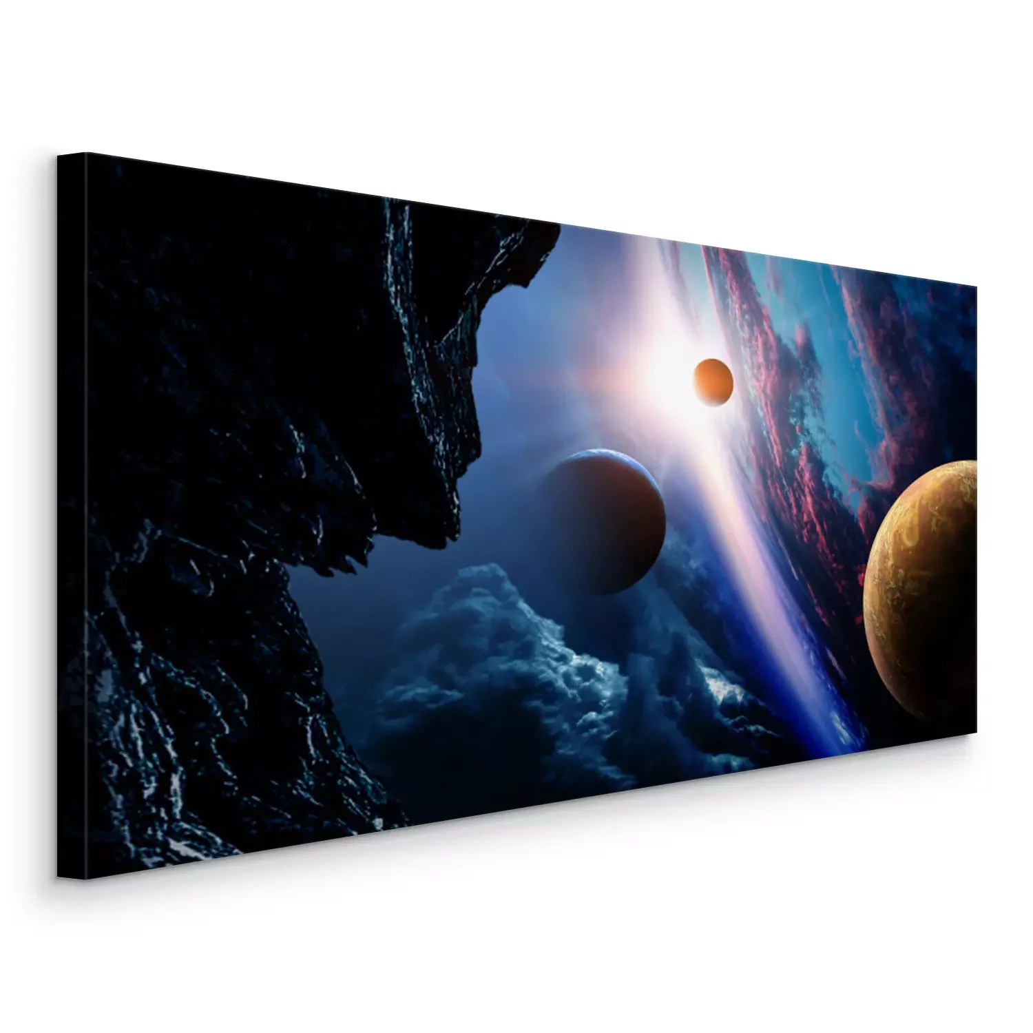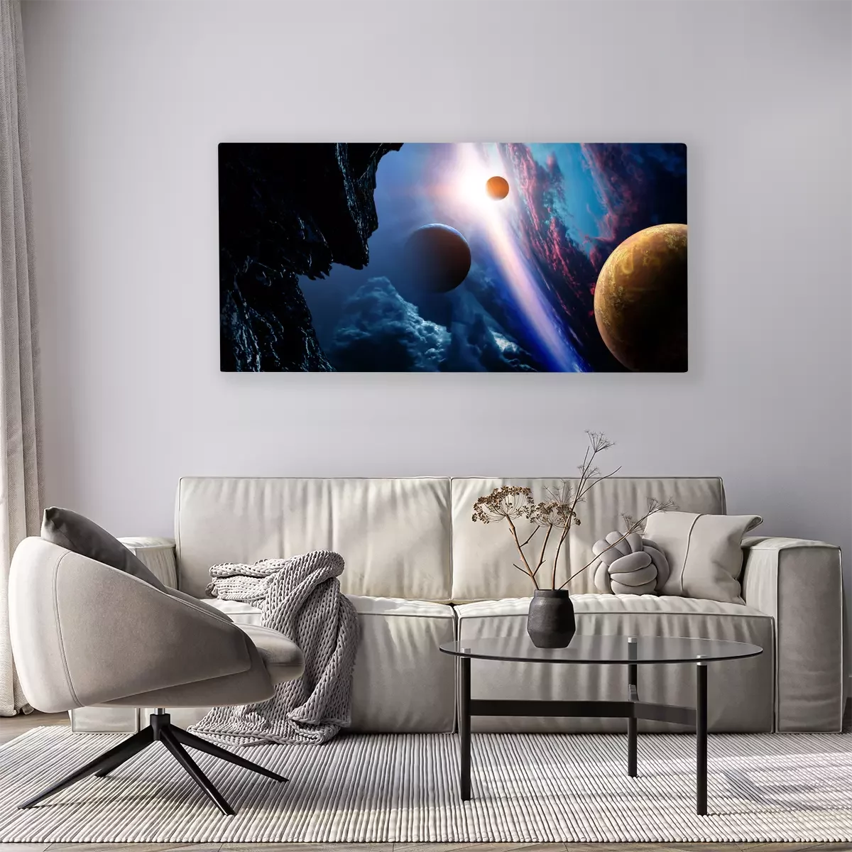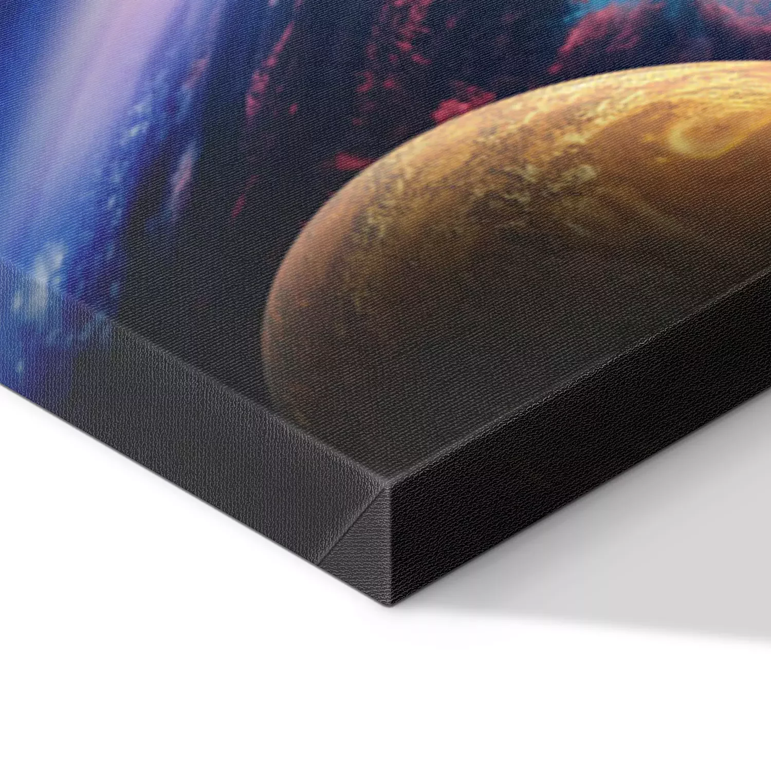 De print wordt aangebracht op hoogwaardig canvas dat op een schildersweefgetouw (spieraam) wordt gespannen. Omdat de print de zijranden bedekt, hoeft het ontwerp niet met een extra kader te worden omlijst. Wij raden ook composities aan die uit meerdere foto's bestaan en zo een coherente compositie vormen.