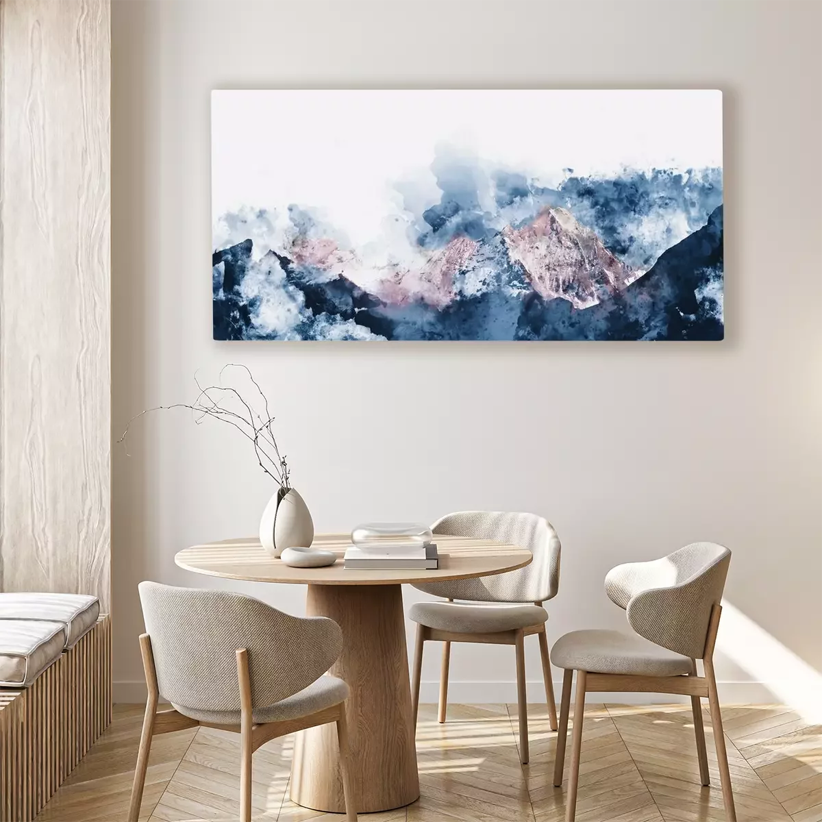 Canvas: Abstract bergketens in de ochtend licht, digitale waterverf p