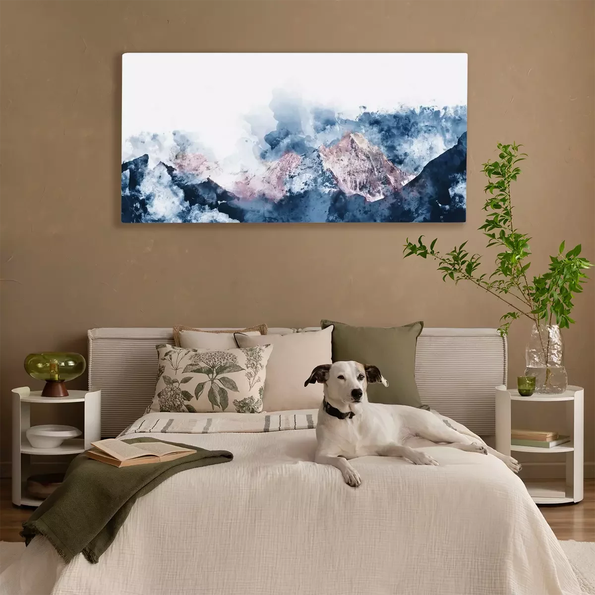 Canvas Abstract bergketens in de ochtend licht, digitale waterverf p