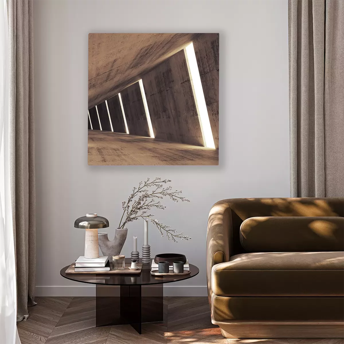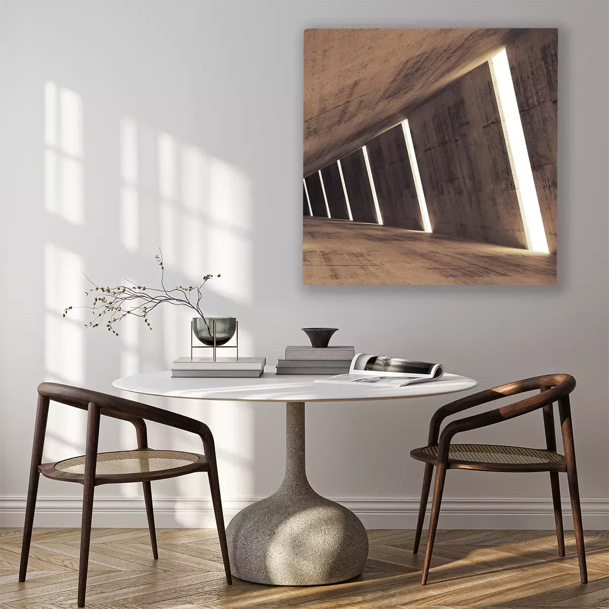 Canvas Abstract betonnen 3d interieur perspectief met lichte strepen
