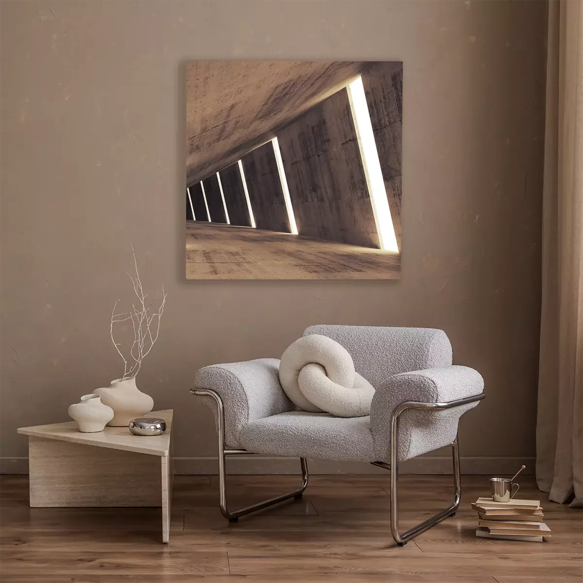 Canvas: Abstract betonnen 3d interieur perspectief met lichte strepen