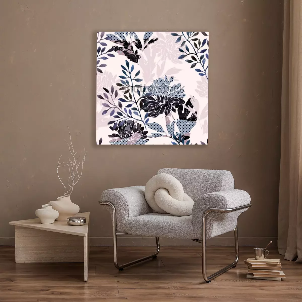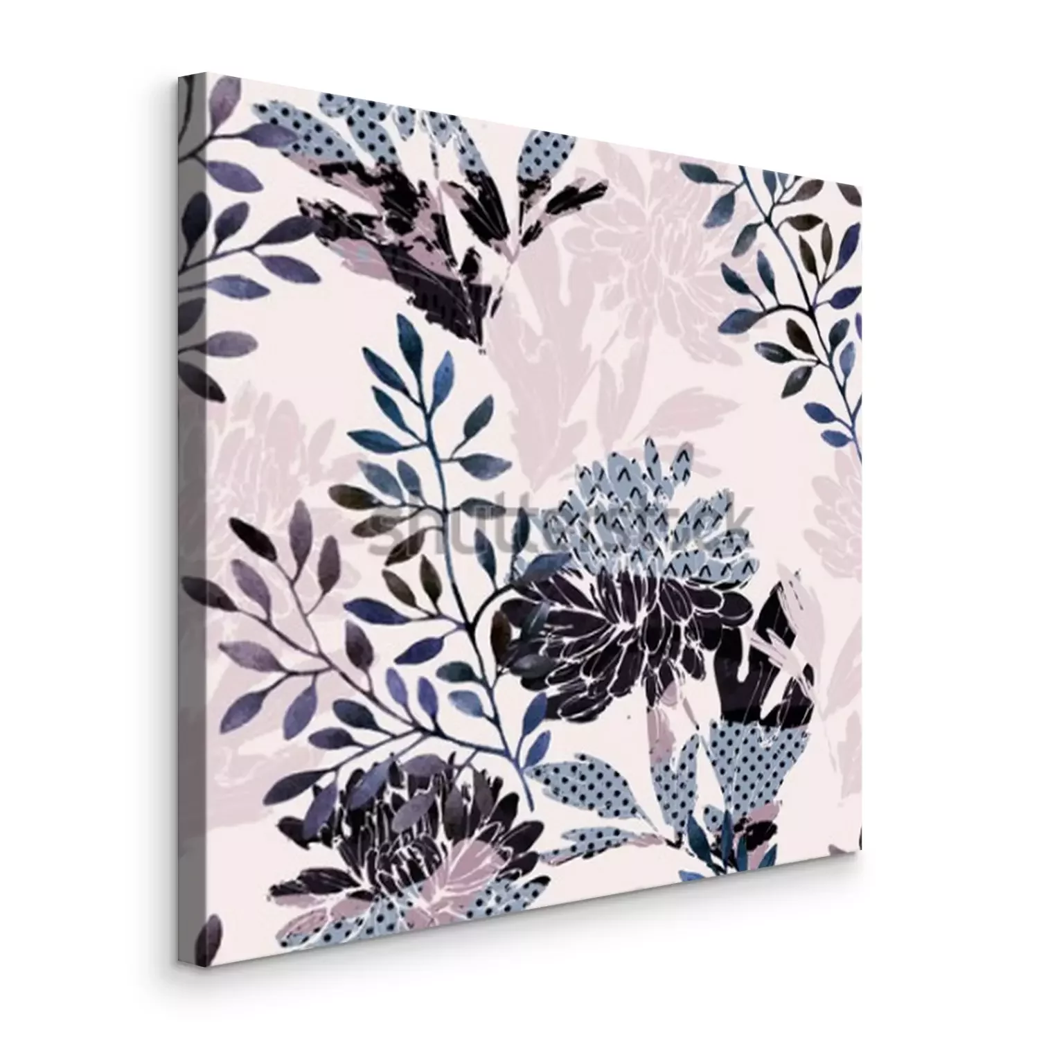 Canvas Abstract bloemen naadloos patroon. Aquarel bloemen, bladeren gevuld met minimale doodle-texturen. Natuurlijke achtergrond Handgeschilderde herfst illustratie voor stof, textiel, inwikkeling ontwerp