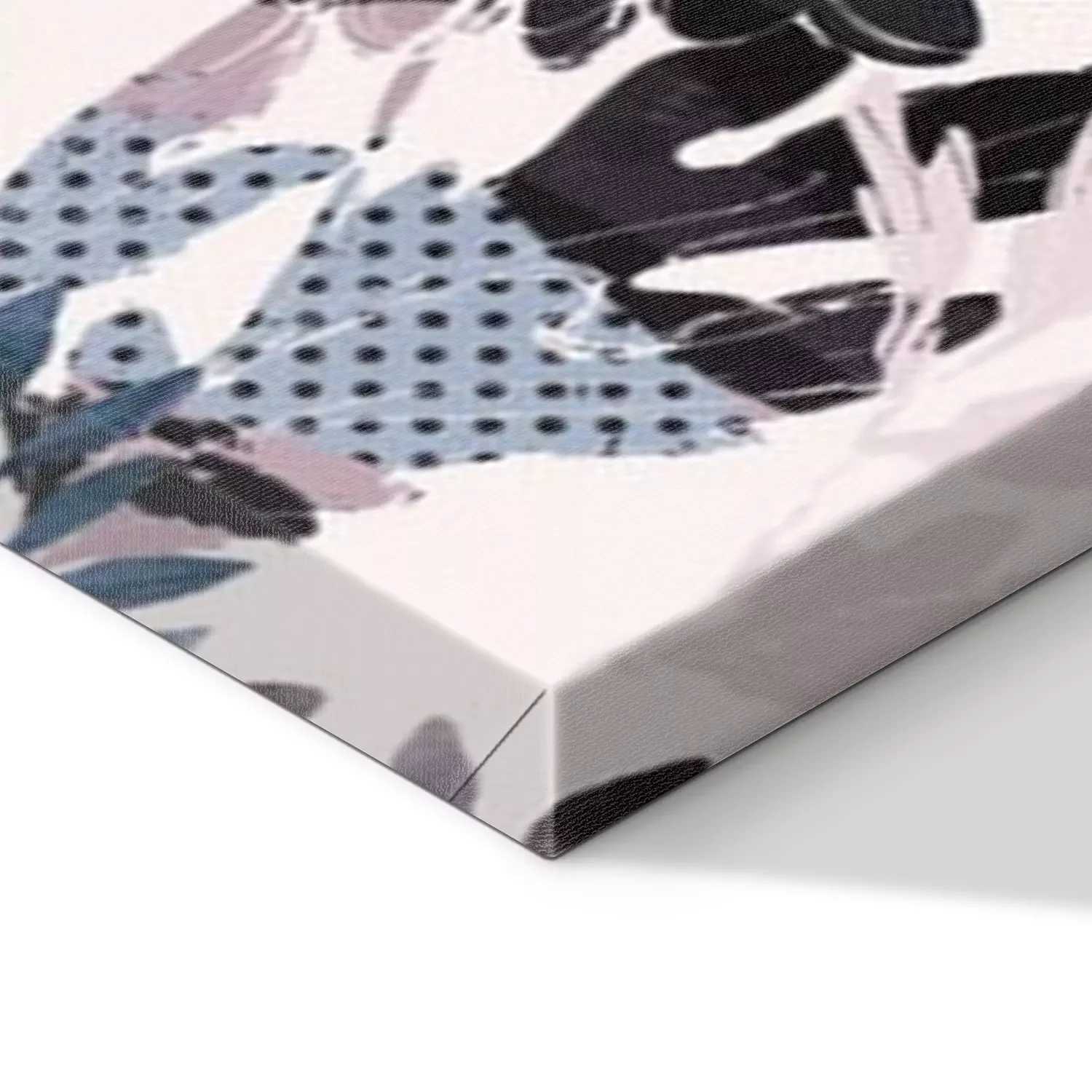 De print wordt aangebracht op hoogwaardig canvas dat op een schildersweefgetouw (spieraam) wordt gespannen. Omdat de print de zijranden bedekt, hoeft het ontwerp niet met een extra kader te worden omlijst. Wij raden ook composities aan die uit meerdere foto's bestaan en zo een coherente compositie vormen.