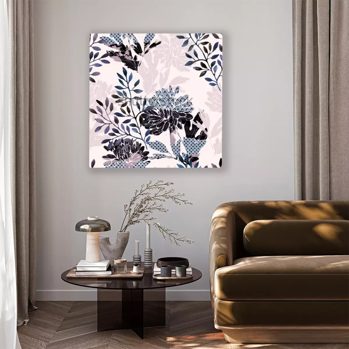 Canvas: Abstract bloemen naadloos patroon. Aquarel bloemen, bladeren gevuld met minimale doodle-texturen. Natuurlijke achtergrond Handgeschilderde herfst illustratie voor stof, textiel, inwikkeling ontwerp