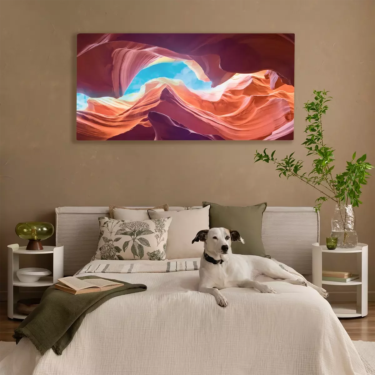 De print wordt aangebracht op hoogwaardig canvas dat op een schildersweefgetouw (spieraam) wordt gespannen. Omdat de print de zijranden bedekt, hoeft het ontwerp niet met een extra kader te worden omlijst. Wij raden ook composities aan die uit meerdere foto's bestaan en zo een coherente compositie vormen.